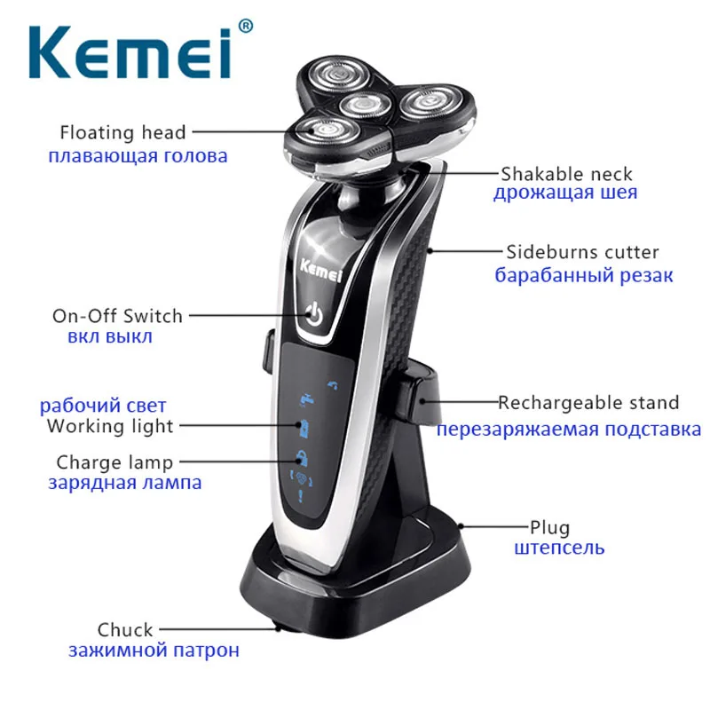 Инструкции:Спасибо за покупку нашего товара!Это перезаряжаемая бритва. Когда вы используете, просто возьмите немного мыла и воды, включите бритву до тех пор, пока мыло не станет приятно пениться. Затем оторвите краску водой. У этого продукта четыре плавающие бритвенные головки, Система индивидуального рефлекторного действия всегда может подобраться близко к контуру лица, эффективно сбривать волосы любой длины и в любых направлениях роста. Разумный дизайн и сотрудничество с пятью лезвиями обеспечат лучший эффект бритья.