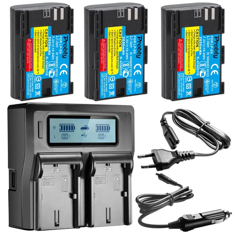 LP E6 LPE6 LP-E6 E6N Батарея 2650 мАч +, светодиодный двойной Заряд...