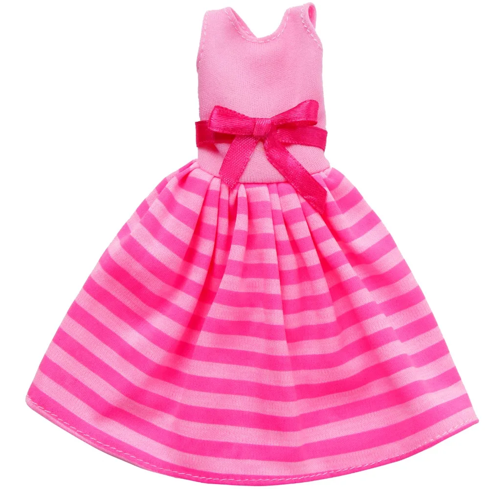 Милое розовое летнее Полосатое мини-платье с бантом, юбка, ежедневные аксессуары для кукол, Одежда для кукол Барби, игрушечный кукольный домик для девочек