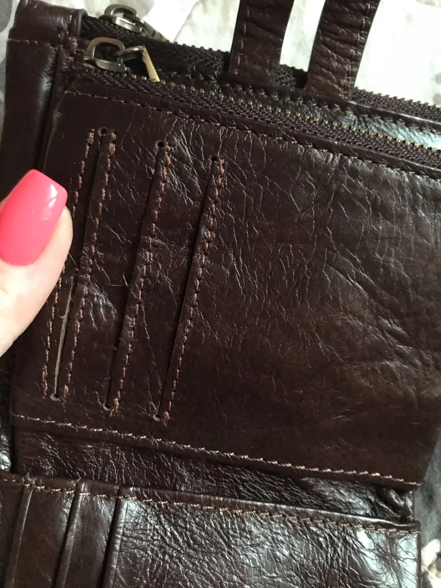 Качество кожи не очень. В магазине такой не купила бы. Еще гравировку имени сделали не то. Не подарить, не продать. Не советую. Открыла спор. Коричневый вроде ничего, а черный некрасивый, стыдно в подарок. Не понравился.