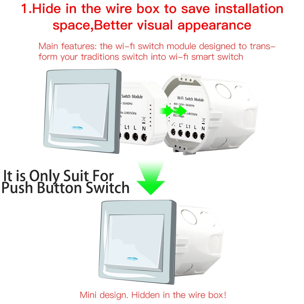 Может сделать ваш существующий 2-сторонний переключатель умным также, просто установите 1 Умный переключатель diy, подходит для ЕС/Великобритании, пожалуйста, подтвердите размер перед заказом.