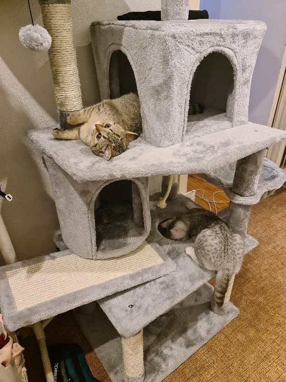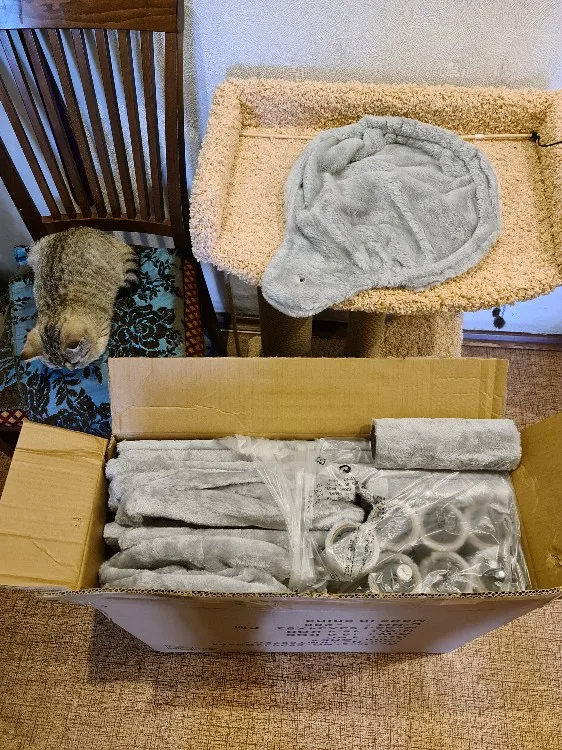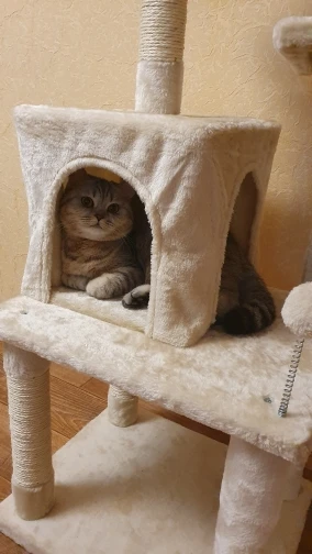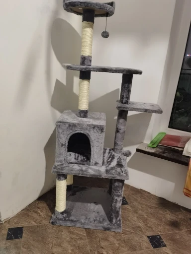 Классный домик для кота, устойчивый. Очень легко собирается (все детали промаркированы, есть инструкция). Соответствует фото.