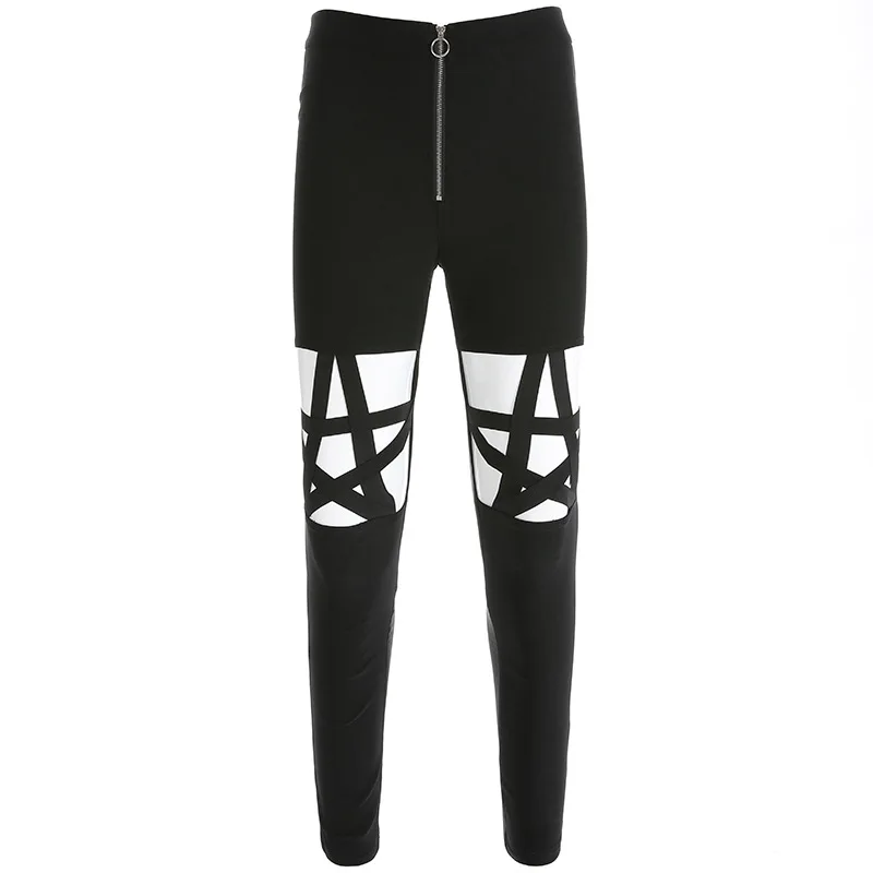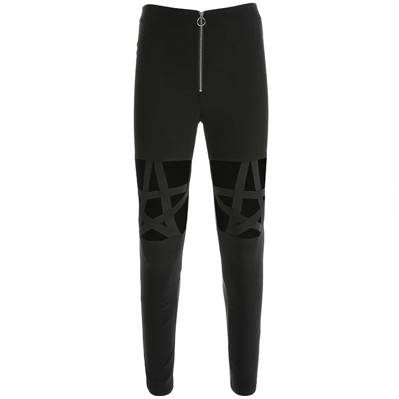 Женские винтажные уличные брюки JIEZuoFang, однотонные Черные Сетчатые перекрещивающиеся брюки с высокой талией в стиле Харадзюку, уличная одежда