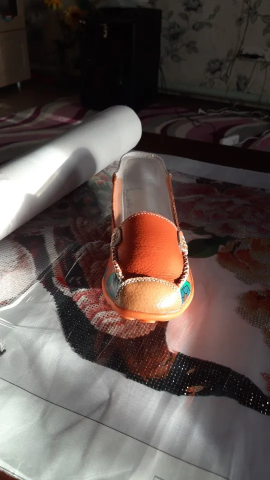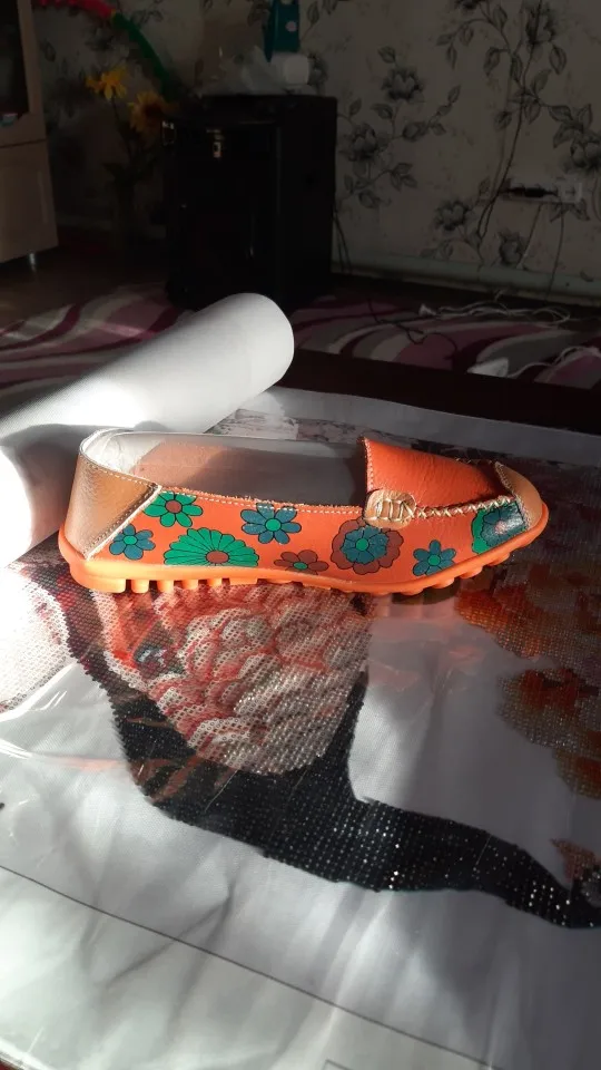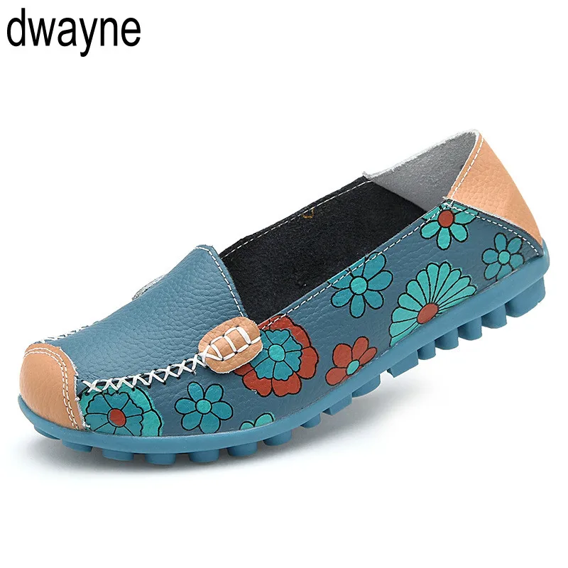 Балетки женские из натуральной кожи, на плоской подошве, с цветочным принтом