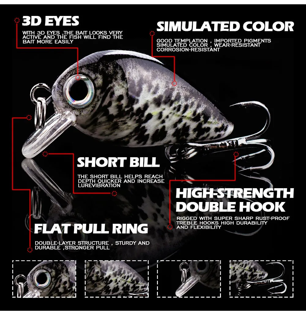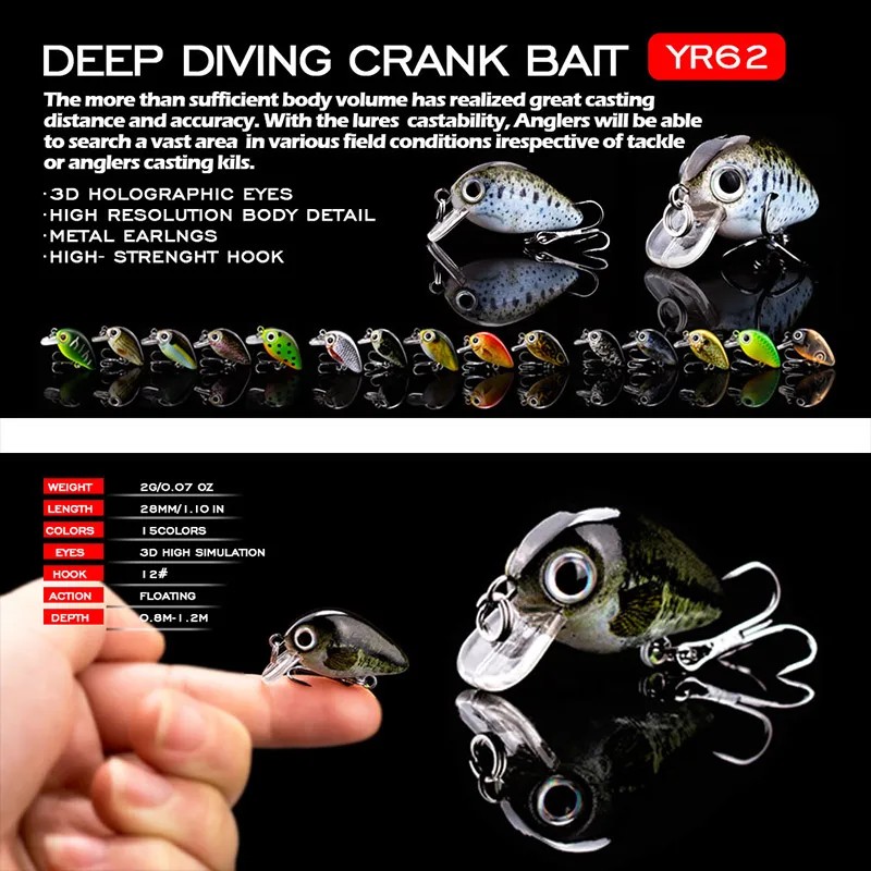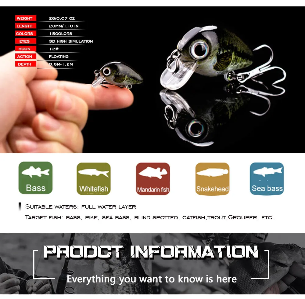 2,8 см мини кренкбейт, приманка для рыбной ловли, 1,5 г, Реалистичная поддельная рыба, плавающая искусственная снасть, рыба, 15 цветов