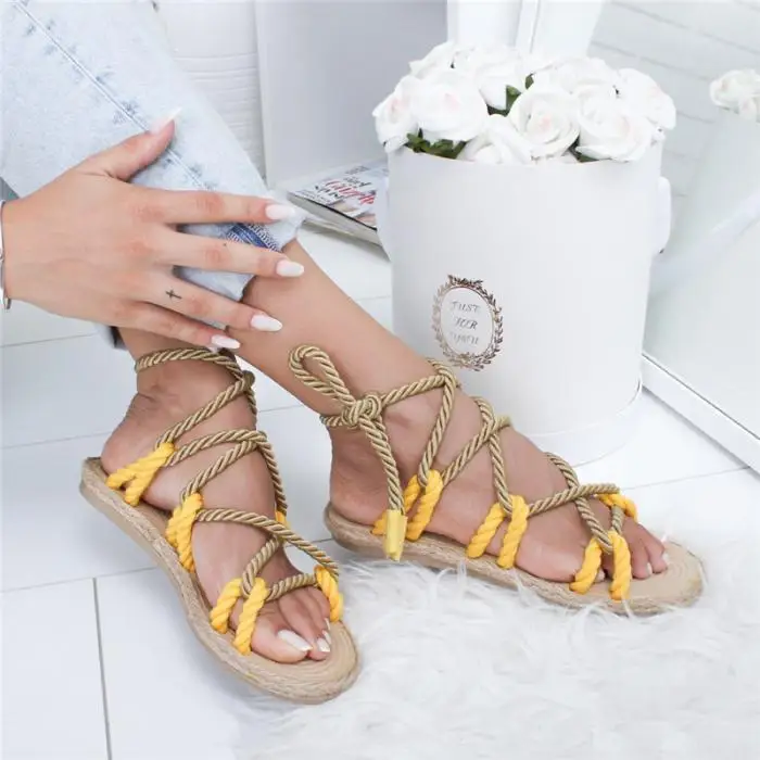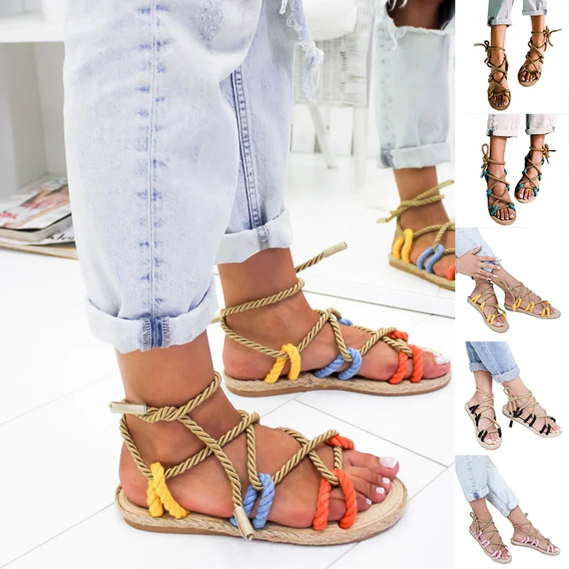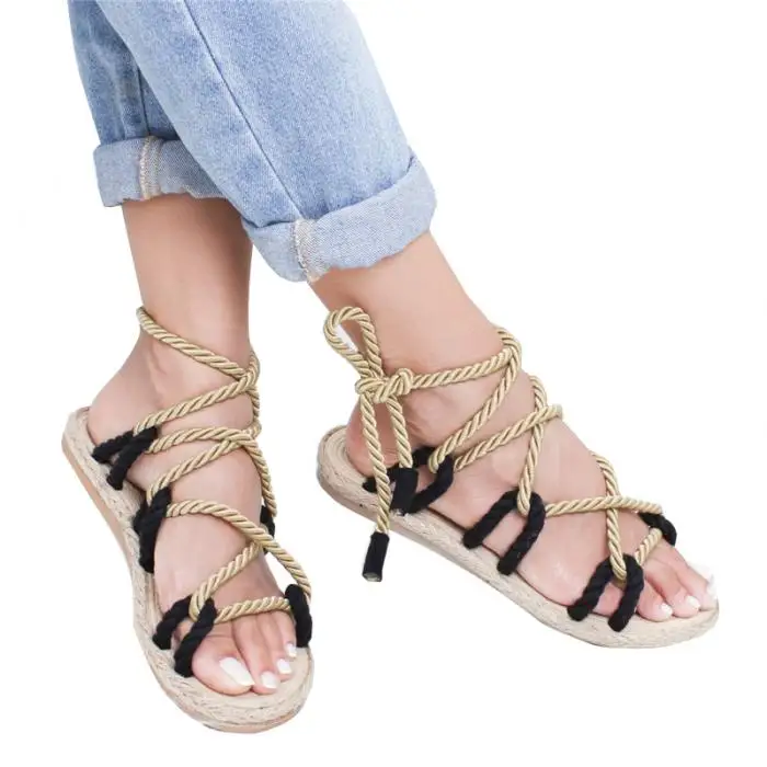 Женские римские сандалии из пеньковой веревки, летняя пляжная обувь-OPK