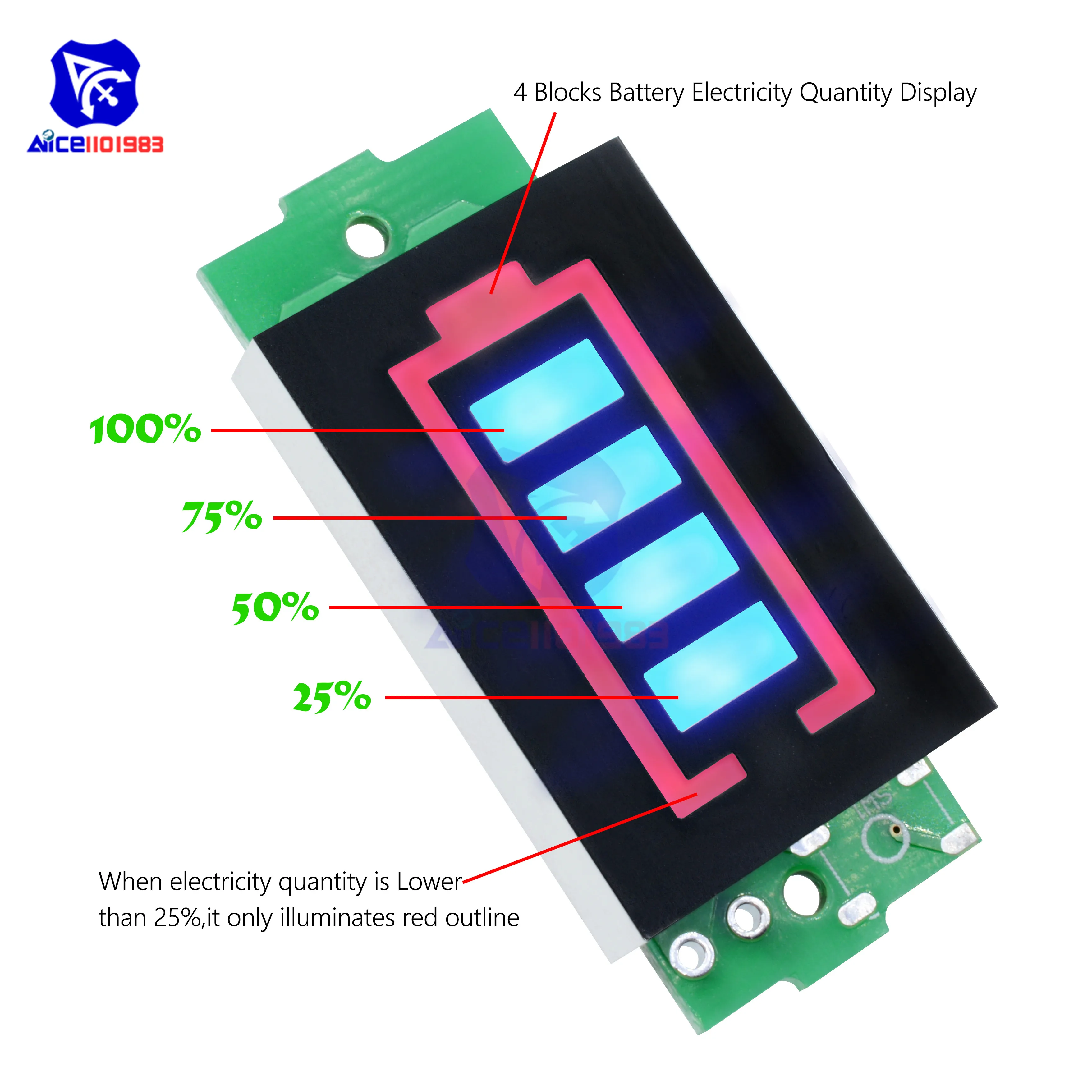 Тестер емкости литиевых аккумуляторов diymore 1S2S3S4S6S7S, 4 уровня, зеленыйсиний, для автомобиля