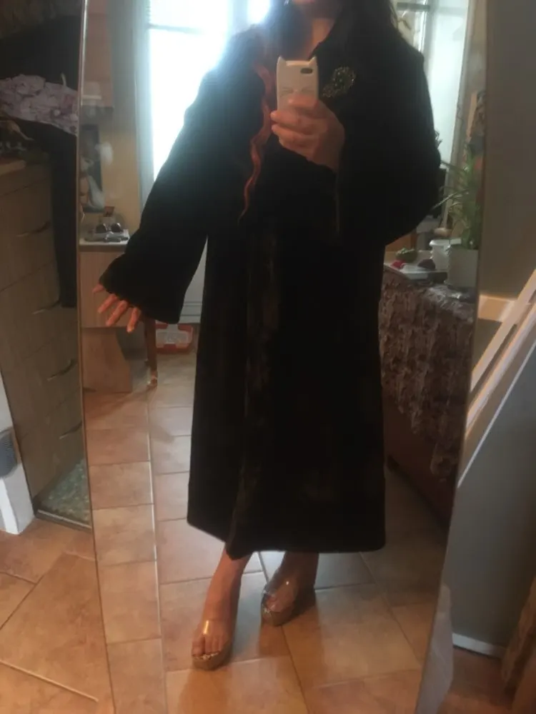 Классная шуба, такая мягкая, красивая) я ушила ее к низу (чуть заузила) и убрала лишний объем в плечах (на рукавах был маленький шовчик, его забрала в шов, где втачивается рукав, рукав стал чуть короче, но мне даже лучше). Ещё хочу добавить замок или кнопку повыше, а то вся грудь нараспашку . Размер заказывала 7xl на российский 56, подошло идеально, есть место для свитера. Думаю, что в морозы в ней будет холодно, так что пока не удалось поносить её на улице, но очень хочется))