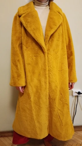 Цвет желтый в действительности ярче, а хотелось приглушённый ближе к горчичному - как на фото , мех тонкий и ворот скудный - на фото совсем другая шуба!!!, в реальности покрой трапеция, ворот меньше и не объемный, на фото мех смотрится толще - короче «ожидание - реальность» , размер 7х подошёл на 54 рус, сел свободно - носить на дачу осенью