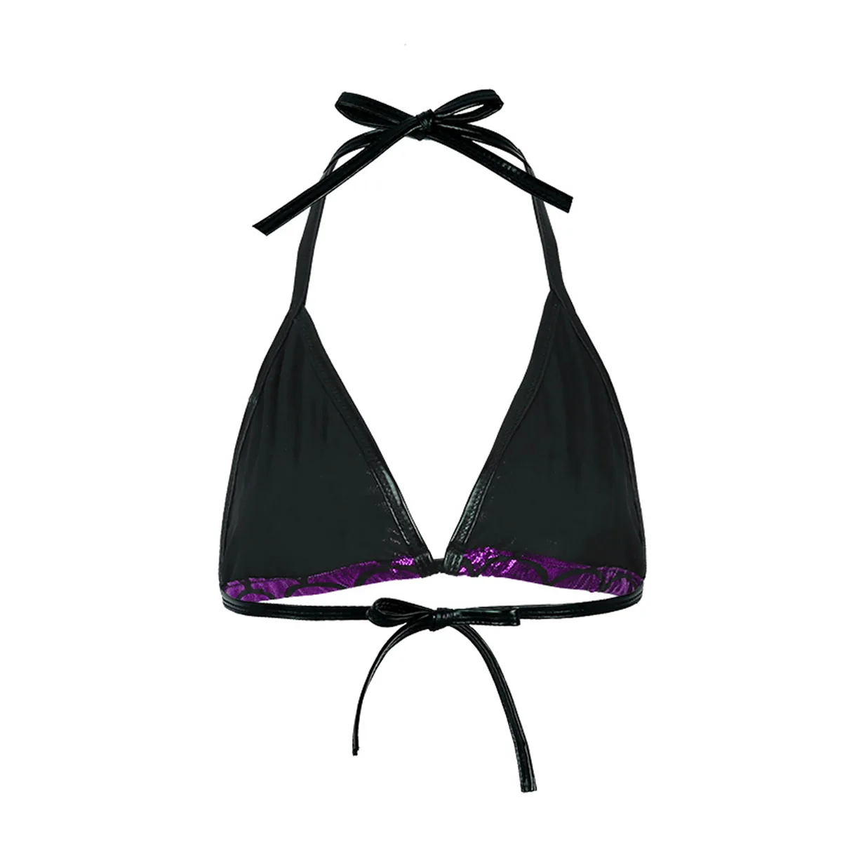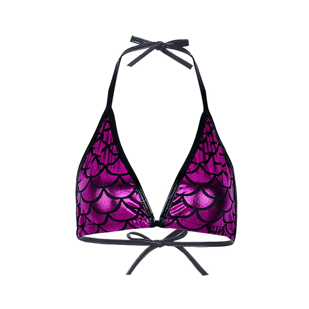 Блестящий металлический Русалка рыбьей чешуи с лямкой на шее галстук-бабочка-ап бюстгальтер пуш-ап Для женщин сексуальный бюстгальтер бикини топы фестивальный рейв пляжный купальный костюм