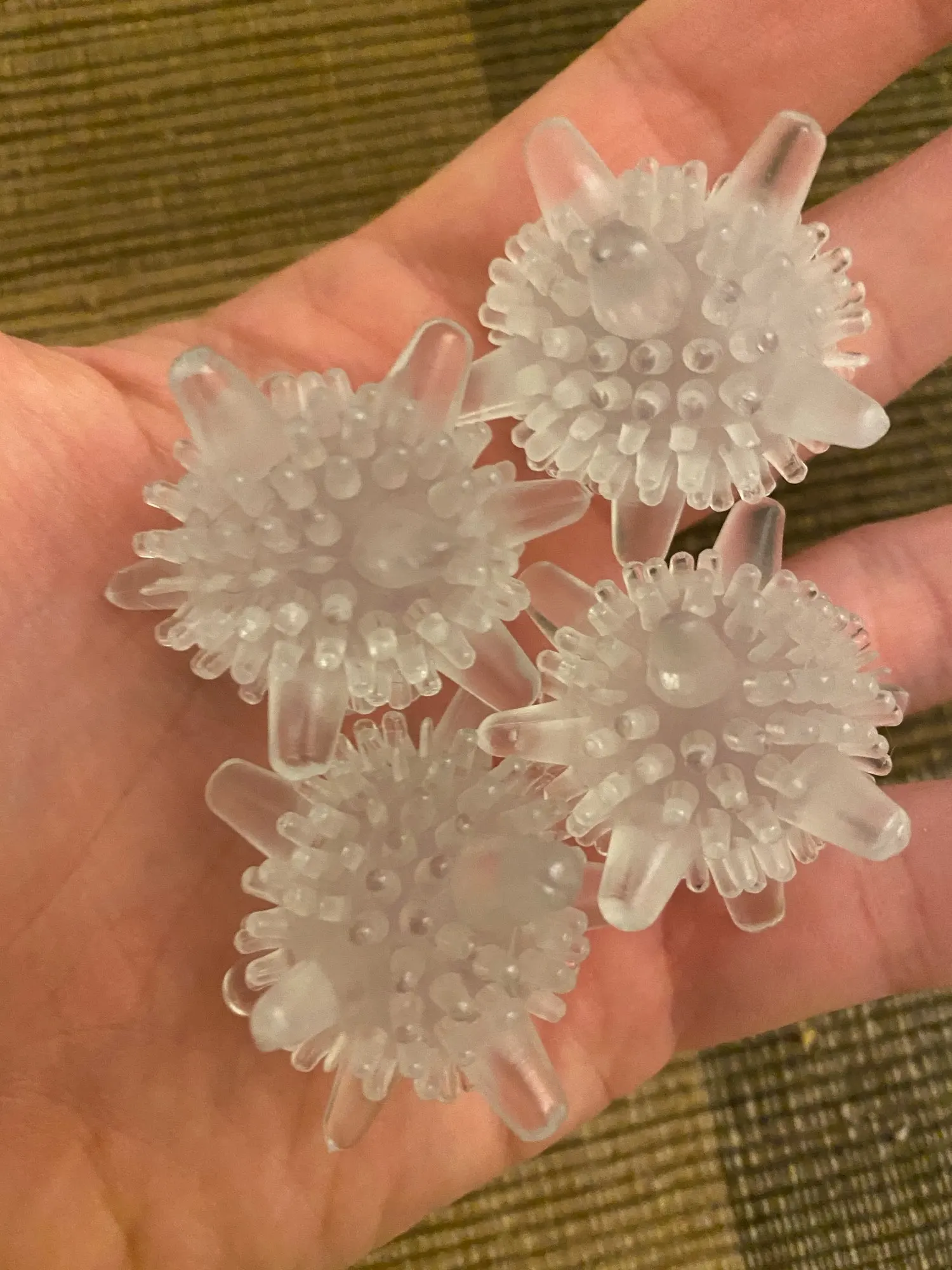 товар дошёл до меня за 15 дней, это рекорд. Шарики маленькие, где-то в диаметре 3-4 см., но для стирки подойдут