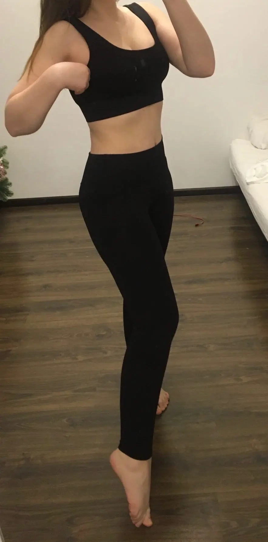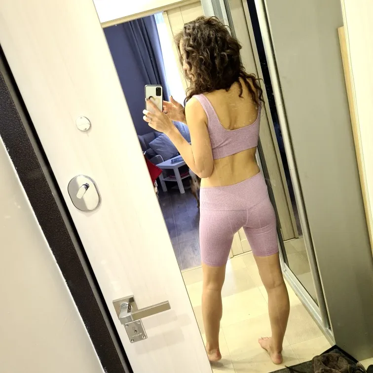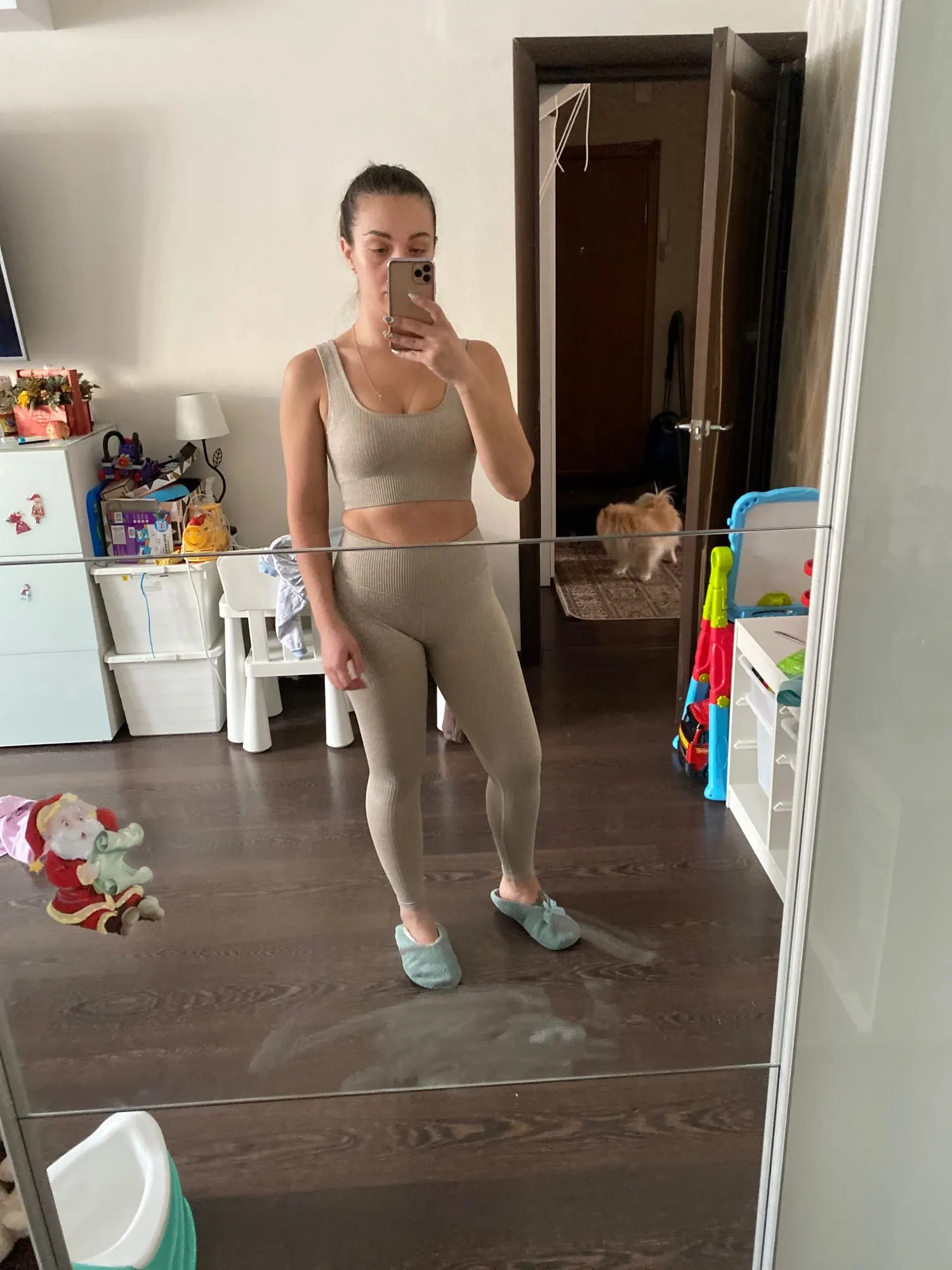 На объемы 81-71-97 размер М великоват. Он хорошо сидит, вищуально не сказать, что большой. Но по ощущениям на теле кажется слишком свободным для такого плана спортивного клстюма. Хочется, чтобы прям обнимал и поддерживал) А он просто свобно обтекает по телу. Если подтянуть на талию 71 см, то пояс начинает торчать с зазором, не облегает. На бёдрах 97 см в размере М сидит норм. На рост 163 покрывает щиколодку, длина полноценная. Ткань очень приятная тактильно. Но кажется слишком тонкой и нежной. Как следствие - изъяны фигуры (прям каждая мелкая складочка, до абсурда) и бельё под костюмом подчеркиваются и видны. Мой цвет кофейный - красивый. Но есть эффект асоциации наготы. Я брала костюм для домашних занятий, так что ок. Но в спортзал бы в нем не пошла, выглядит по крайней мере в этом цвете в сочетании с тонклстью ткани прям оучень откровенно.