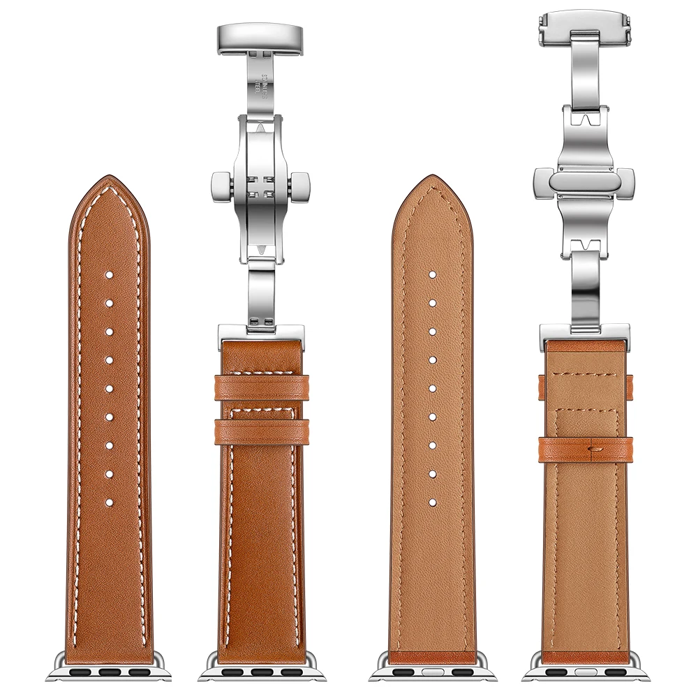 Ремешок из натуральной кожи с застежкой-бабочкой для Apple Watch 7,...
