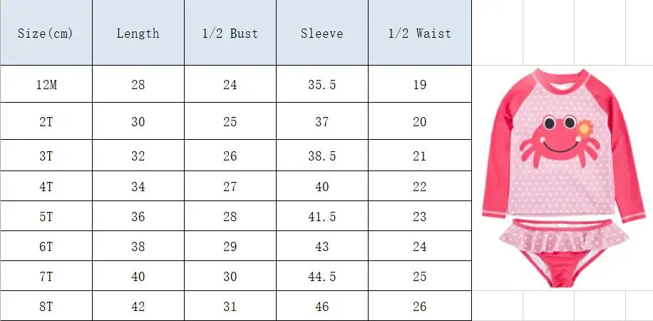Купальник очень клевый.Доставка быстрая.Продавец хороший,у нас был брак и продавец вернул деньги.Т.к.купальник нам очень понравился мы обязательно перезакажим.На 2 года среднего телосложение сел отлично,ткань не хлипкая.Все как надо)советую к покупке)