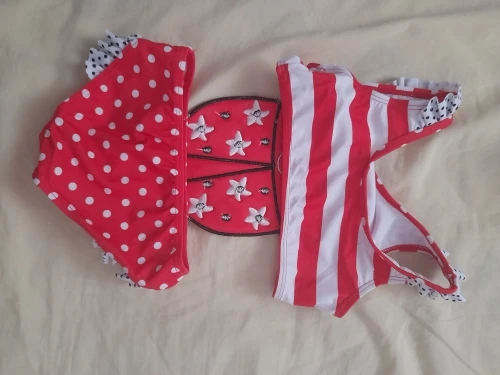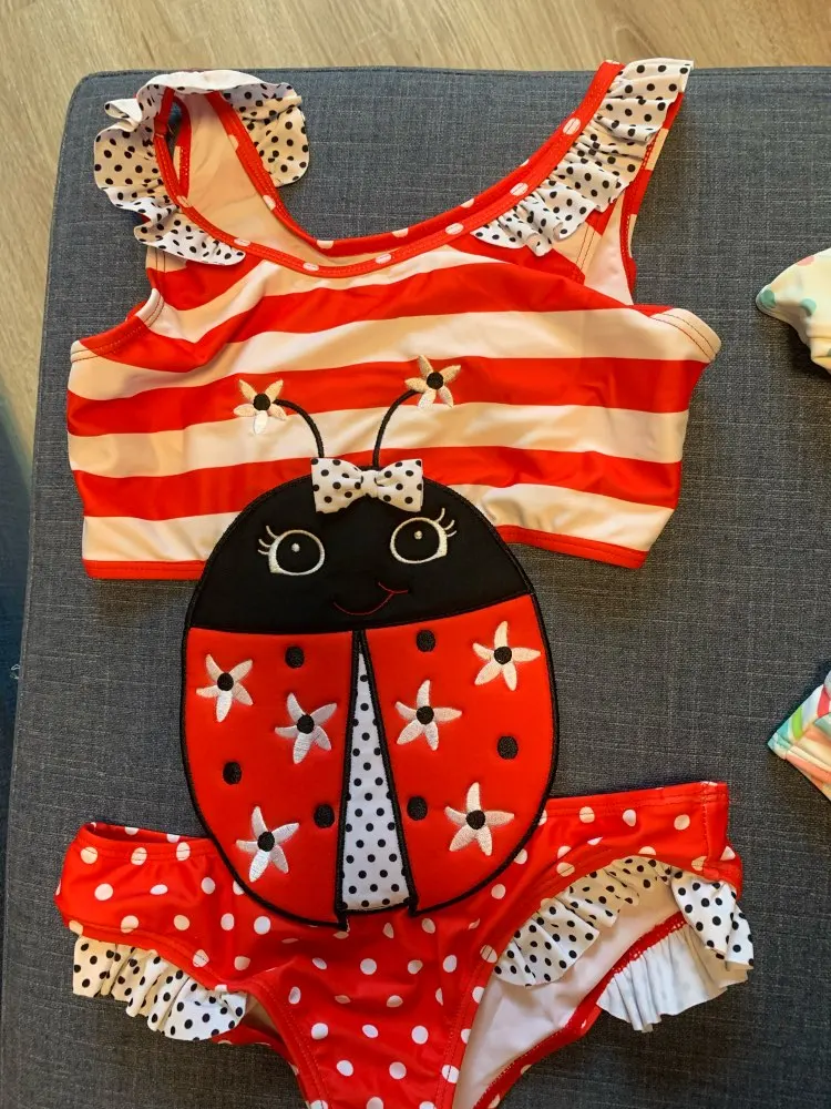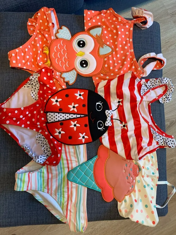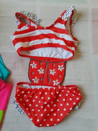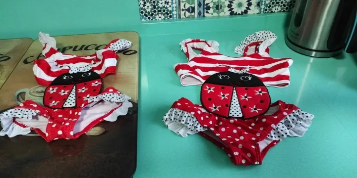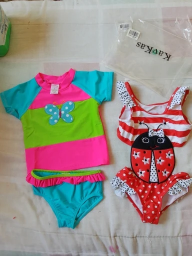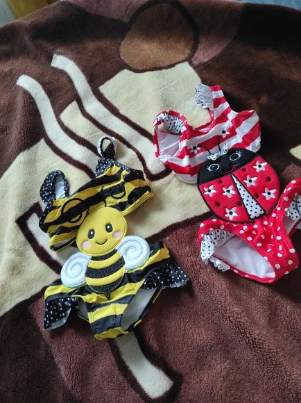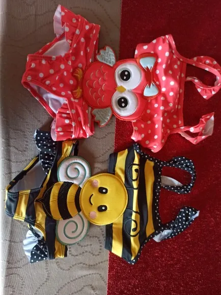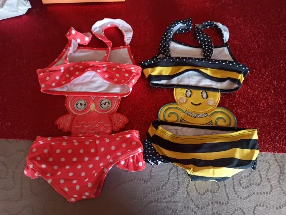 Купальники красивые и очень понравились, только вот с размерами не угадала.. Взяла 4т и 6т на 98 и 116 ростовку. Было бы как раз 3т на 98см и 5т на 116 рост. На вырост вообщем