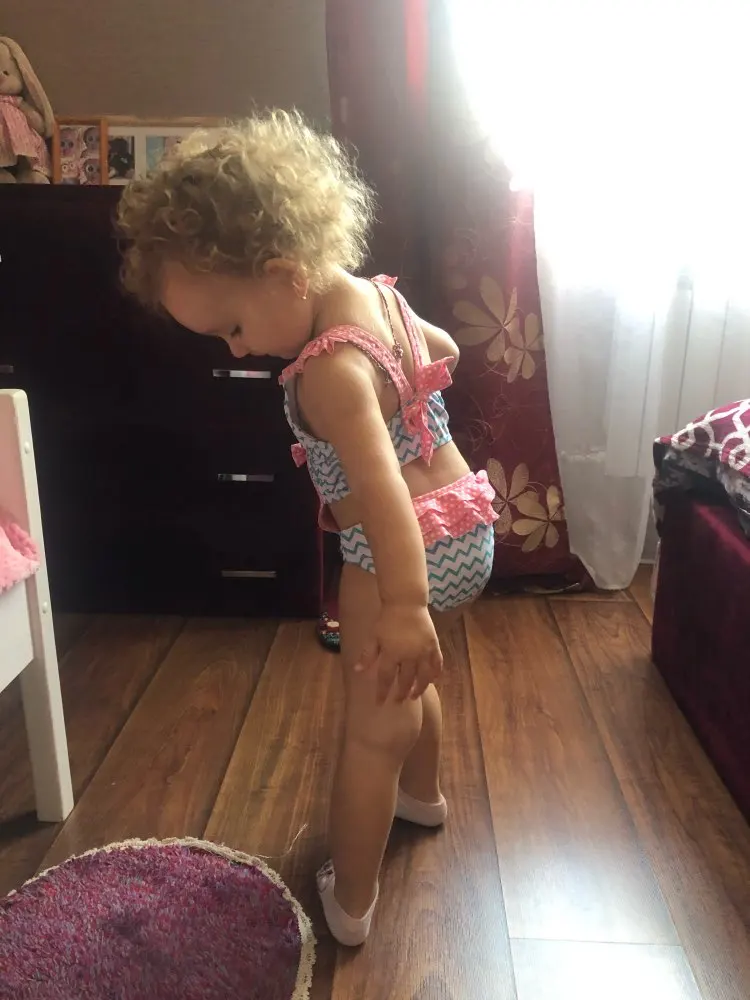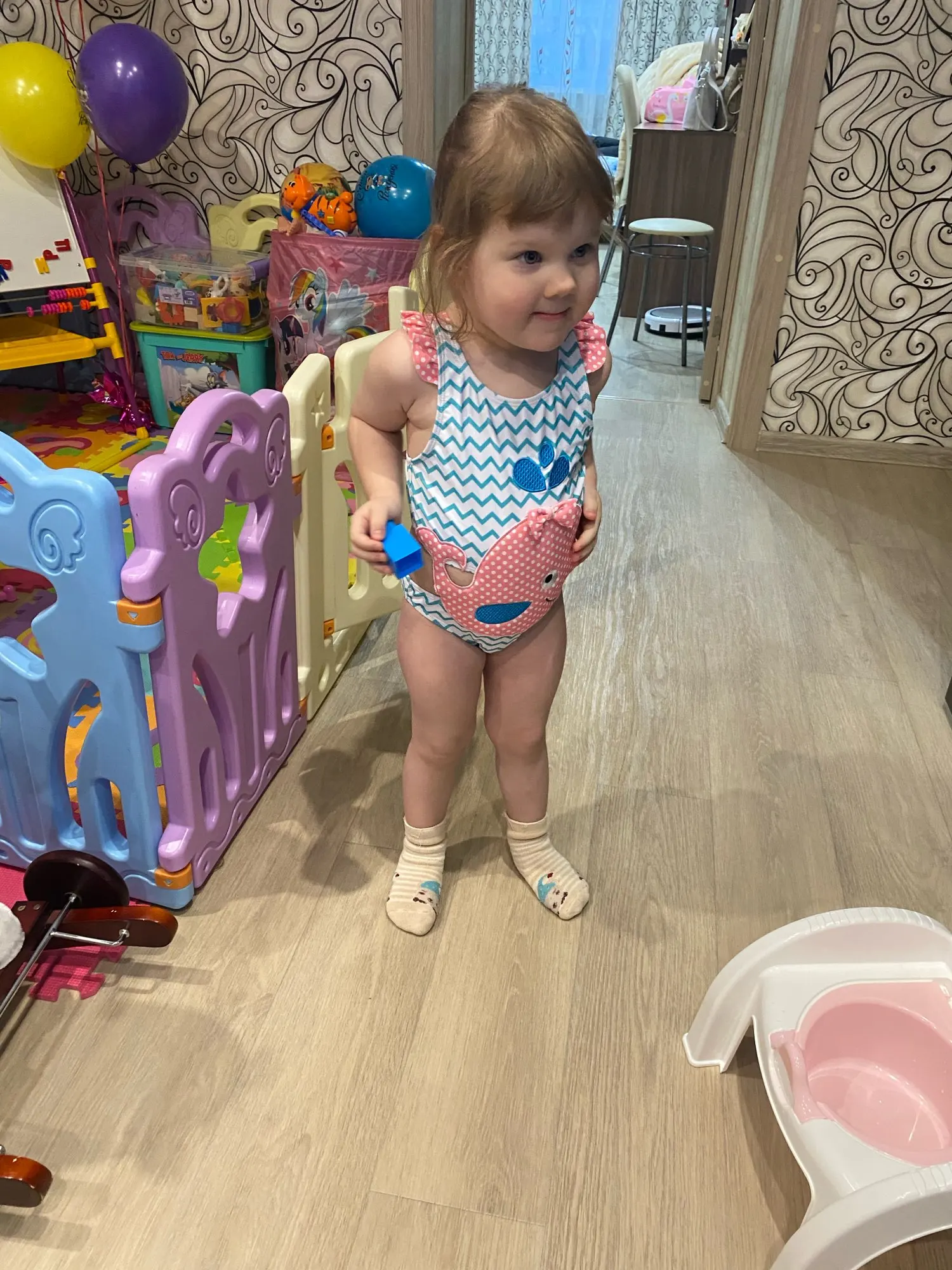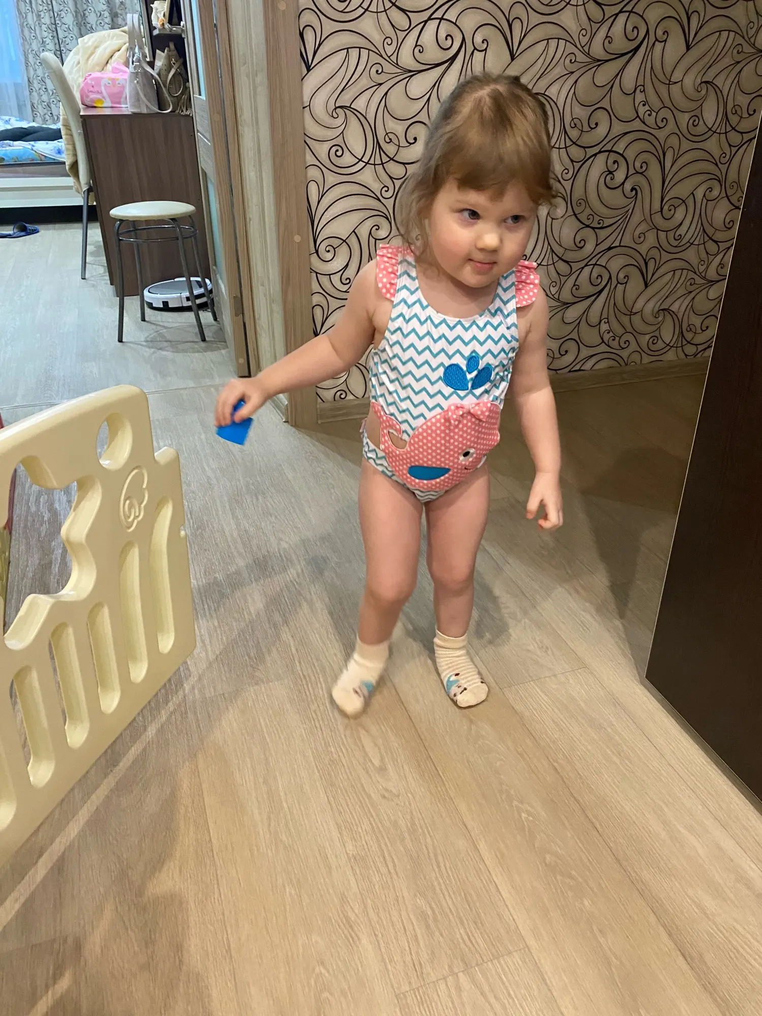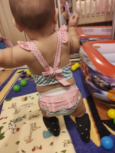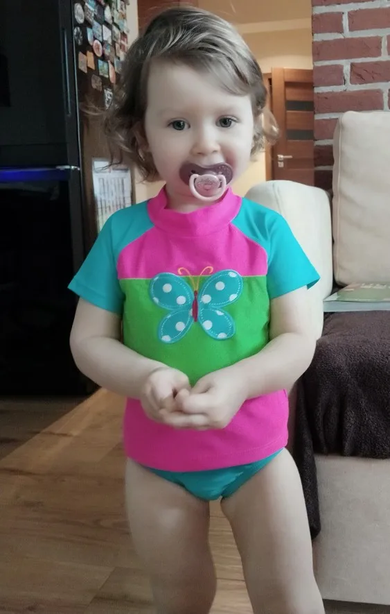 Купальник классный, у нас дома таких не встречала. Сидит очень хорошо. Но размеры надо смотреть индивидуально. У нас возраст 1.9, рост 82 см, вес 11.400. Заказала размер 2т, купальник только только.
