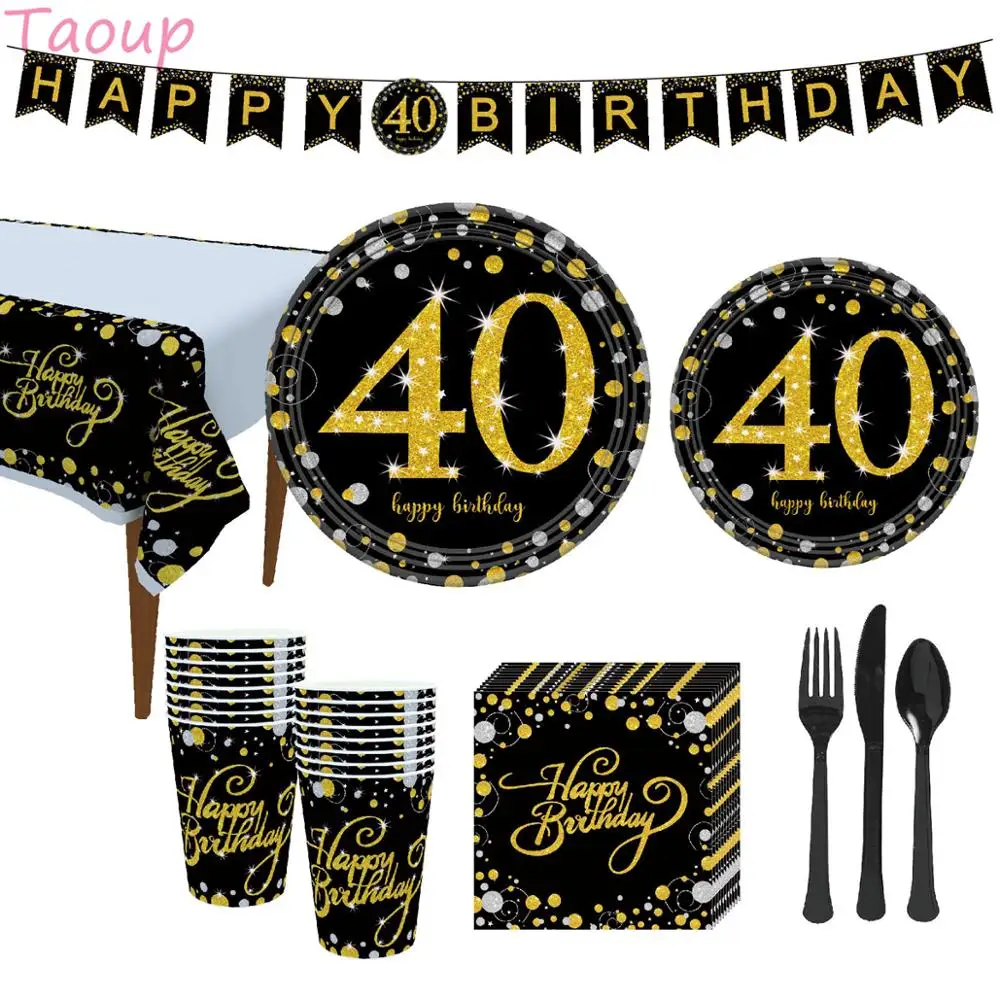 Золотая одноразовая посуда Taoup, 40 шт., салфетка, салфетка, чашки, одноразовая посуда для вечеринок, декор для 40-го дня рождения, для родителей