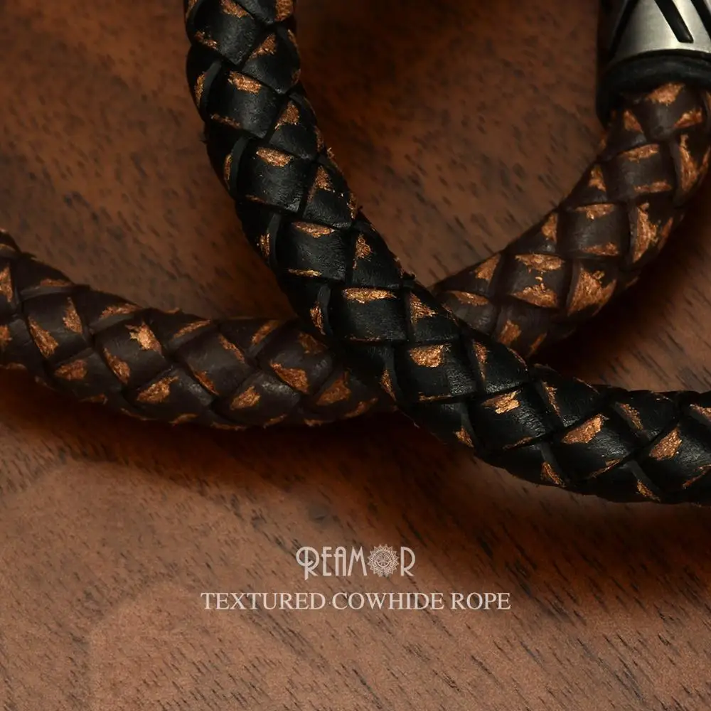 Мужской рельефный браслет REAMOR из натуральной воловьей кожи, из н...