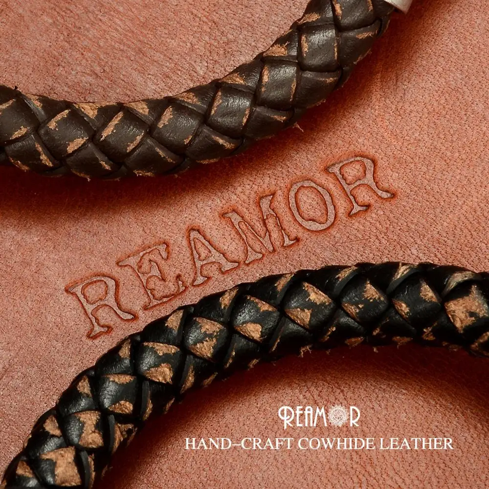 Мужской плетеный браслет из натуральной кожи REAMOR, роскошный брас...