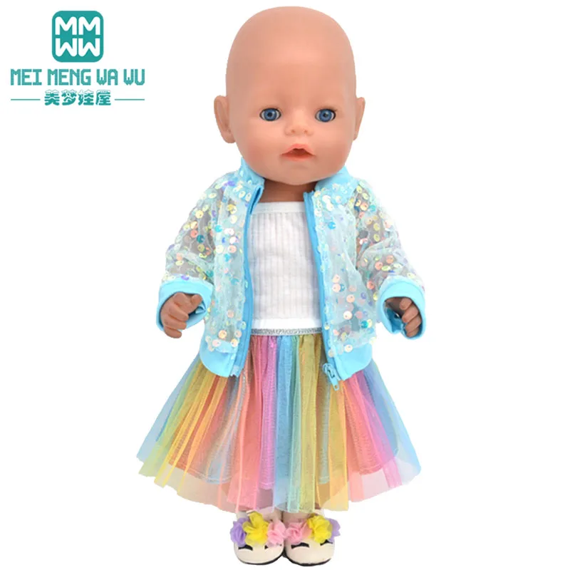 Одежда для куклы, расшитая блестками, туфли, подходит для детей 43-45 см, игрушка для новорожденных, подарок для девочки американские кукольные аксессуары