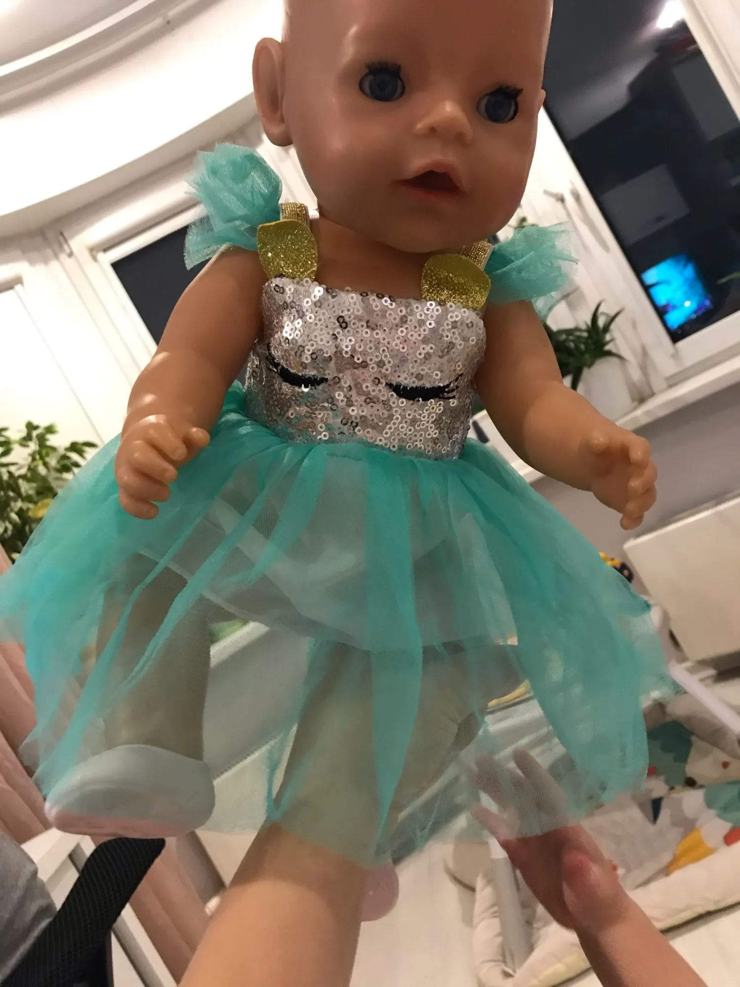 Платье милое,но на нашего оригинального беби борна 43 см. маловато оказалось ,сзади с трудом застёгивается.Очень жаль,хотели ещё заказать в других цветах,но размер не наш. The dress is cute, but on our original baby born 43 cm, it turned out to be not enough, it can hardly be fastened at the back. It's a pity, we wanted to order it in other colors, but the size is not ours