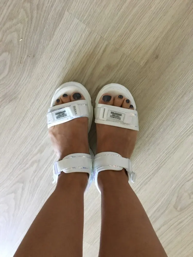 Босоножки очень крутые, качественные и легкие, на ноге практически не ощущаются. Благодаря застёжкам на липучках хорошо фиксируются на стопе, поэтому ходить в них очень удобно. Запакованы были очень хорошо, пришли без повреждений. На свой привычный 38 взяла размер 8, подошли идеально! Мои измерения: длина стопы 23 см, ширина стопы 8-9 см. Уже с нетерпением жду лета, чтобы поскорее их выгулять! Дизайн стильный и аккуратный. В местных шоурумах подобные модели стоят в 3-5 раз дороже. Берите, не пожалеете!