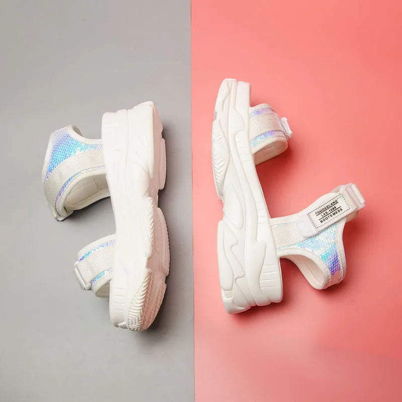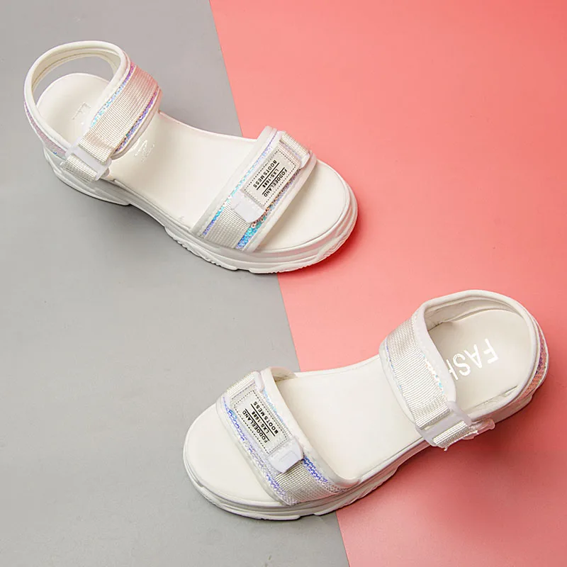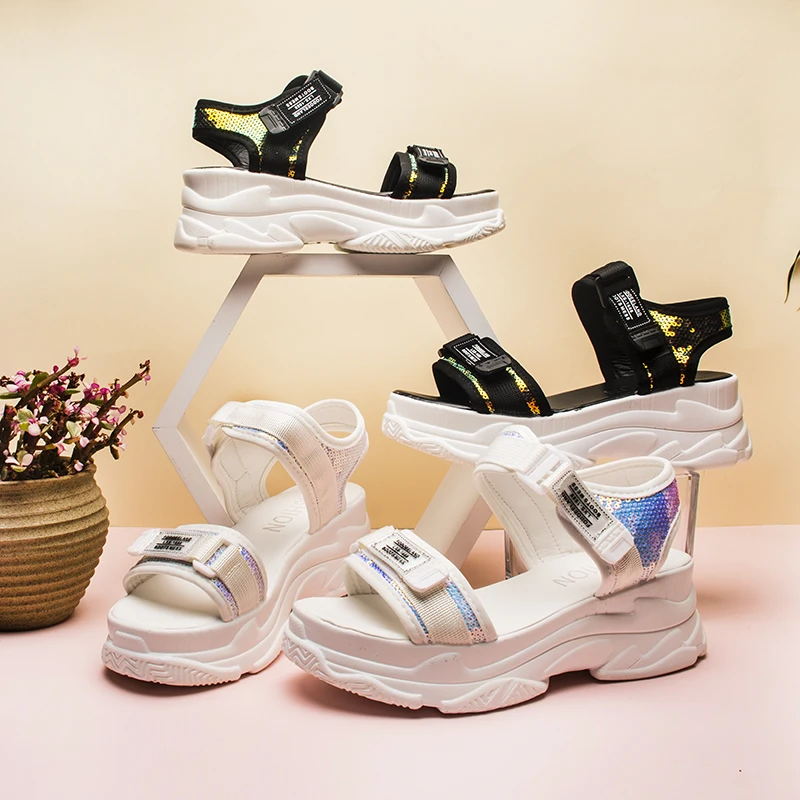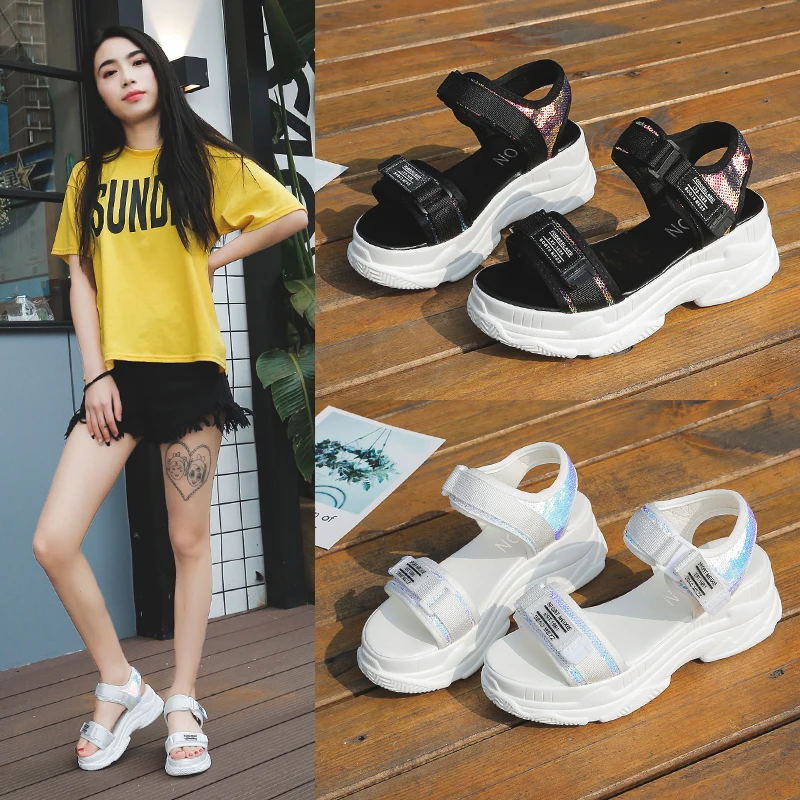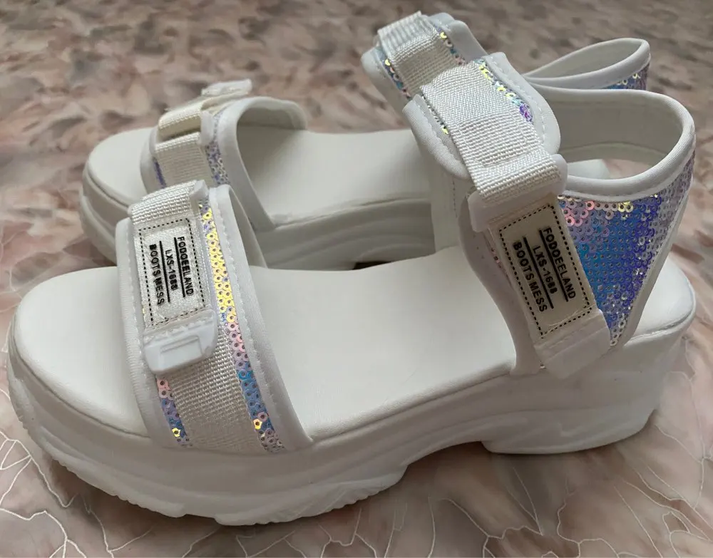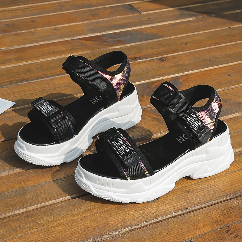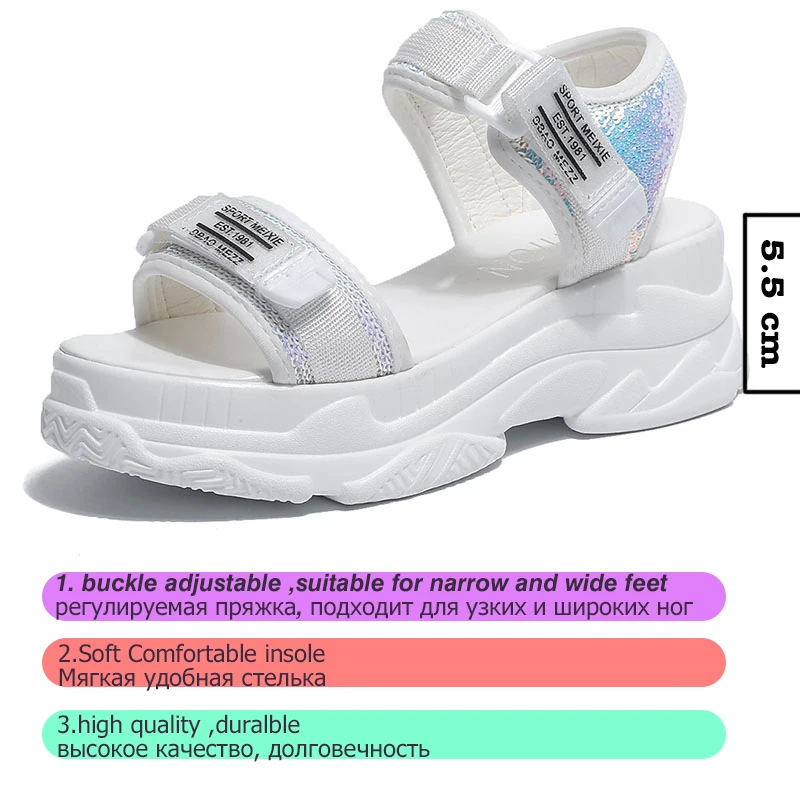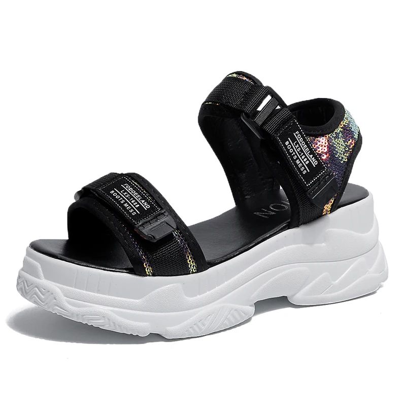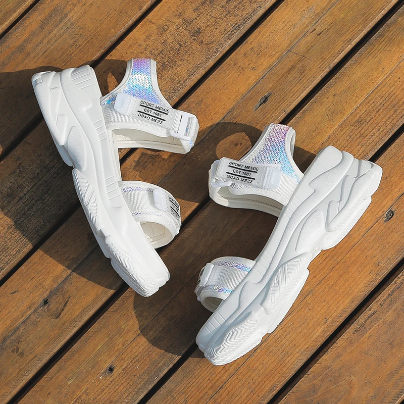 Fujinлетние женские босоножки с пряжкой; Цвет черный, белый; Босоножки на платформе; Белые удобные женские пляжные туфли на толстой подошве