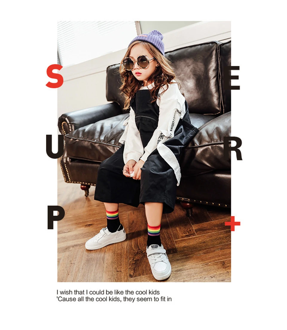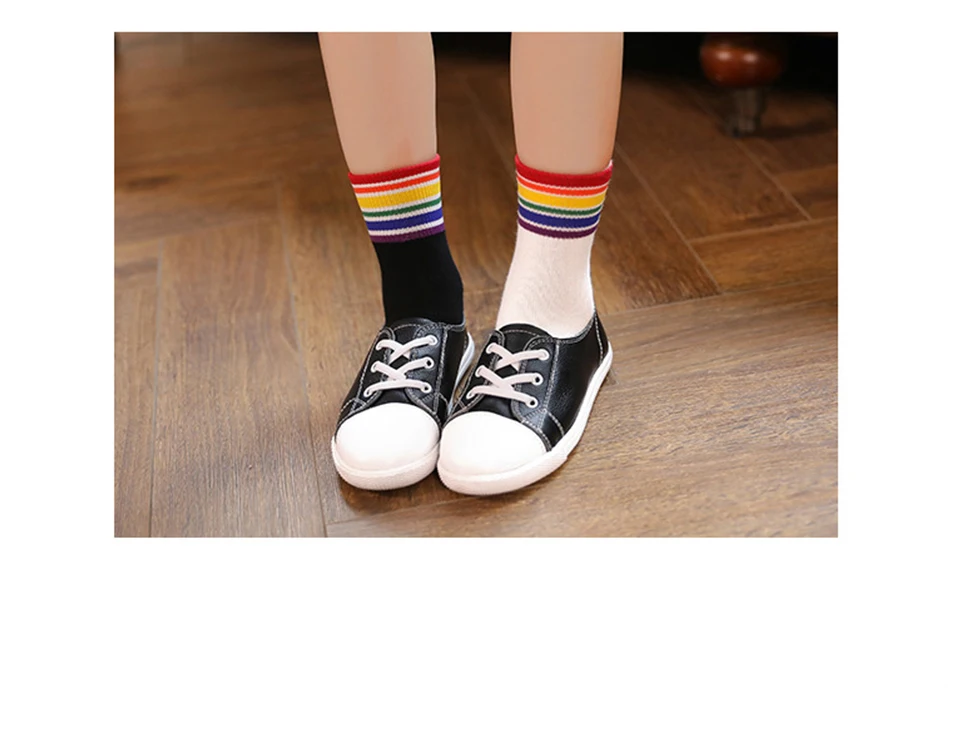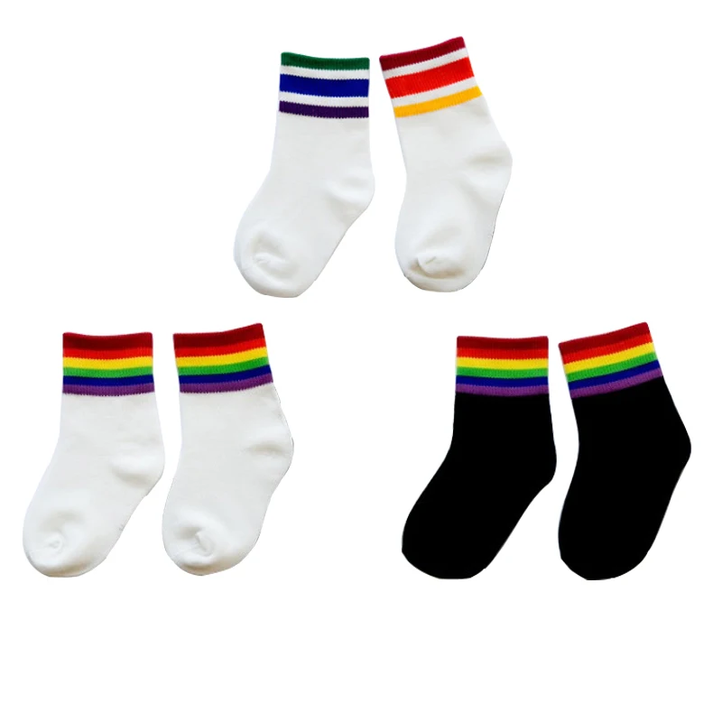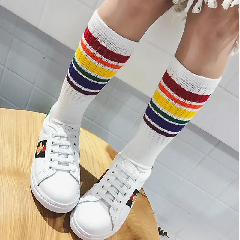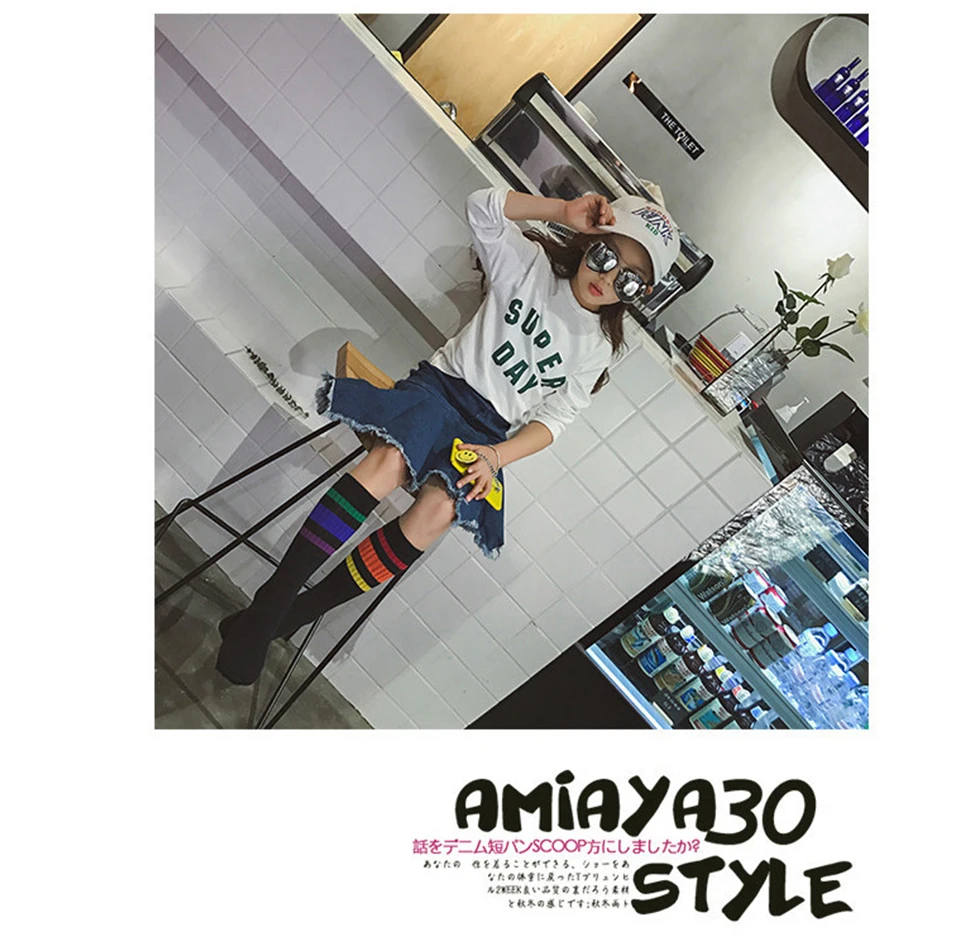 Гольфы для маленьких девочек, радужные носки, цветные, белые хлопковые детские носки в полоску, летние футбольные спортивные длинные носки для маленьких мальчиков и девочек