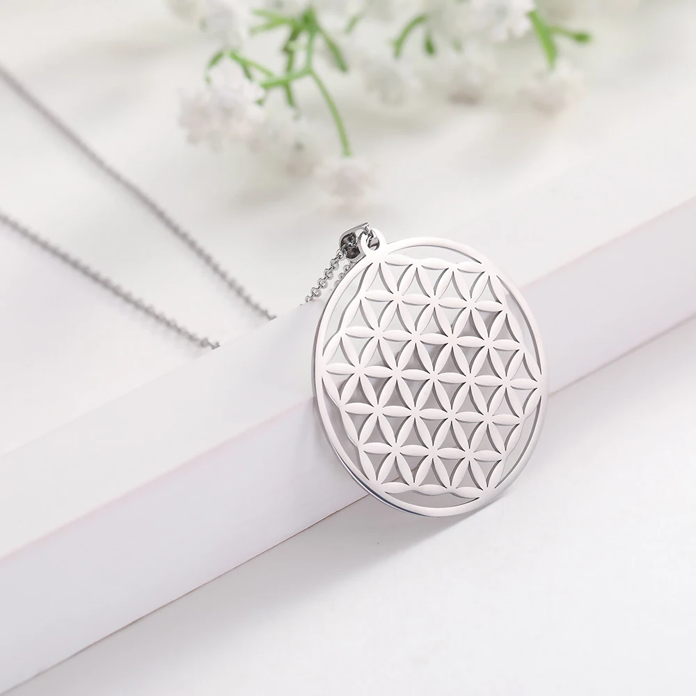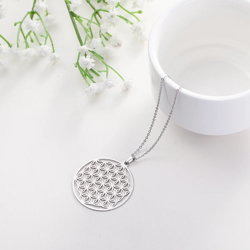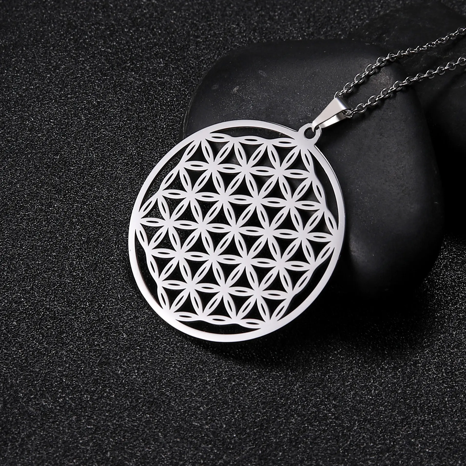 Женское винтажное ожерелье Teamer кулон цветок жизни, ювелирное изделие из нержавеющей стали, Священная геометрия, мандала, колье, аксессуары