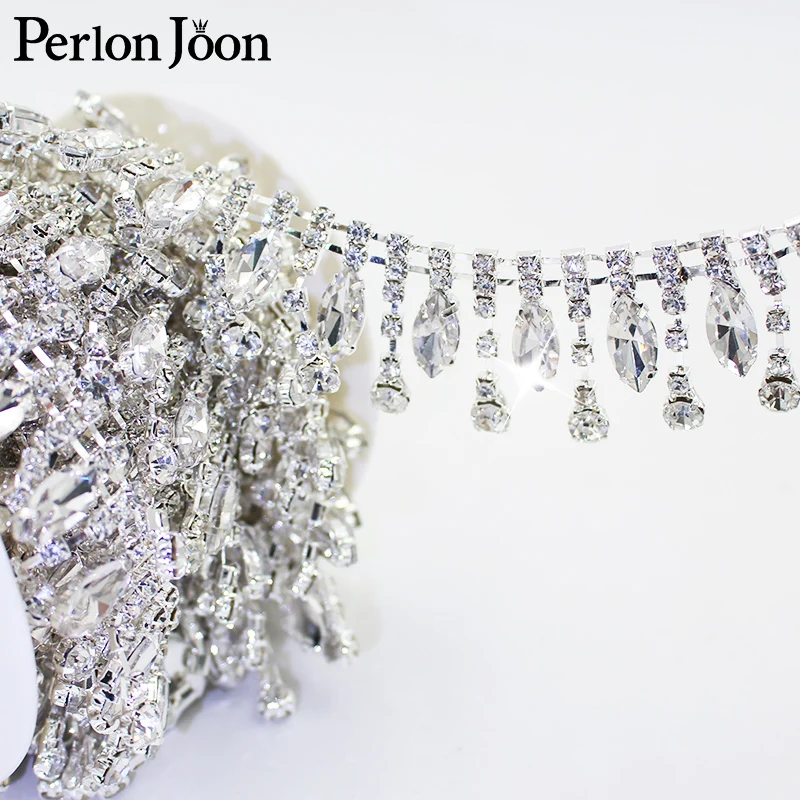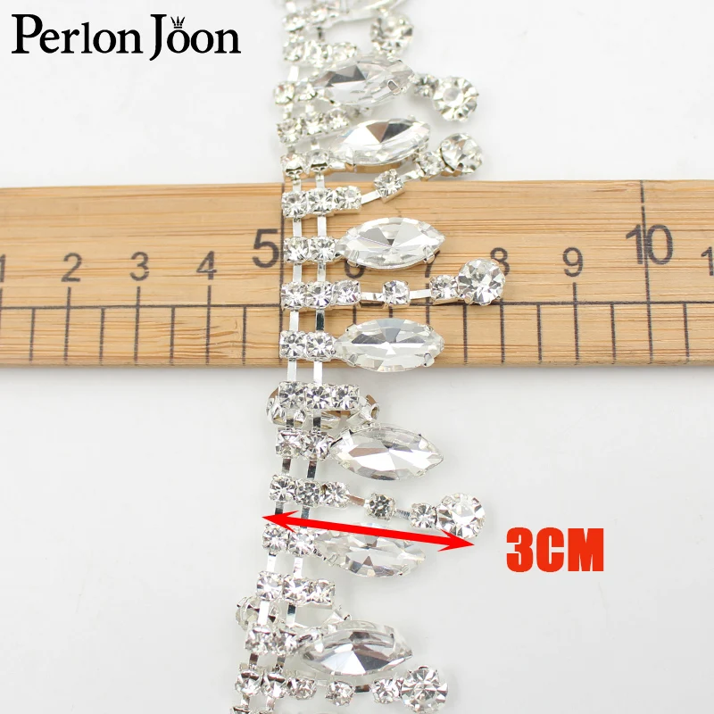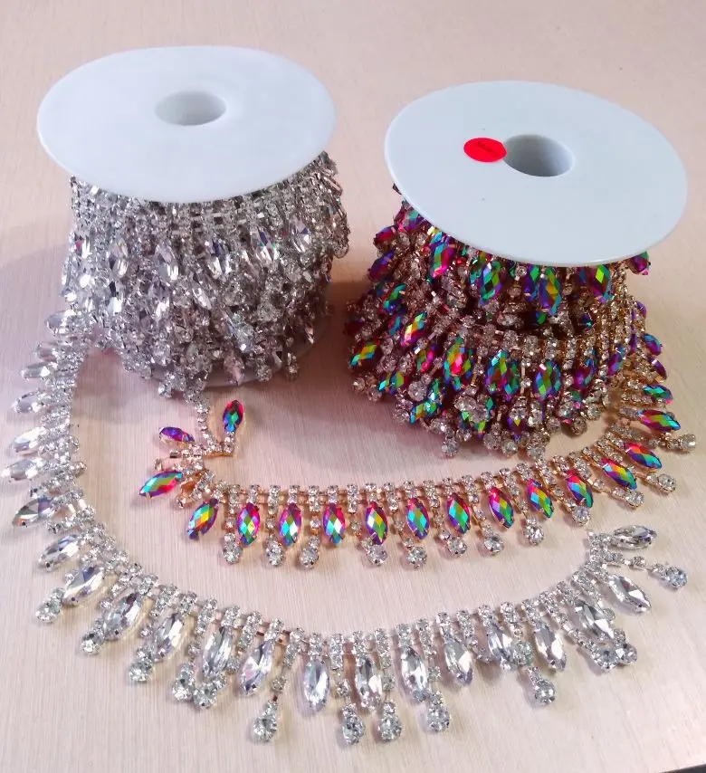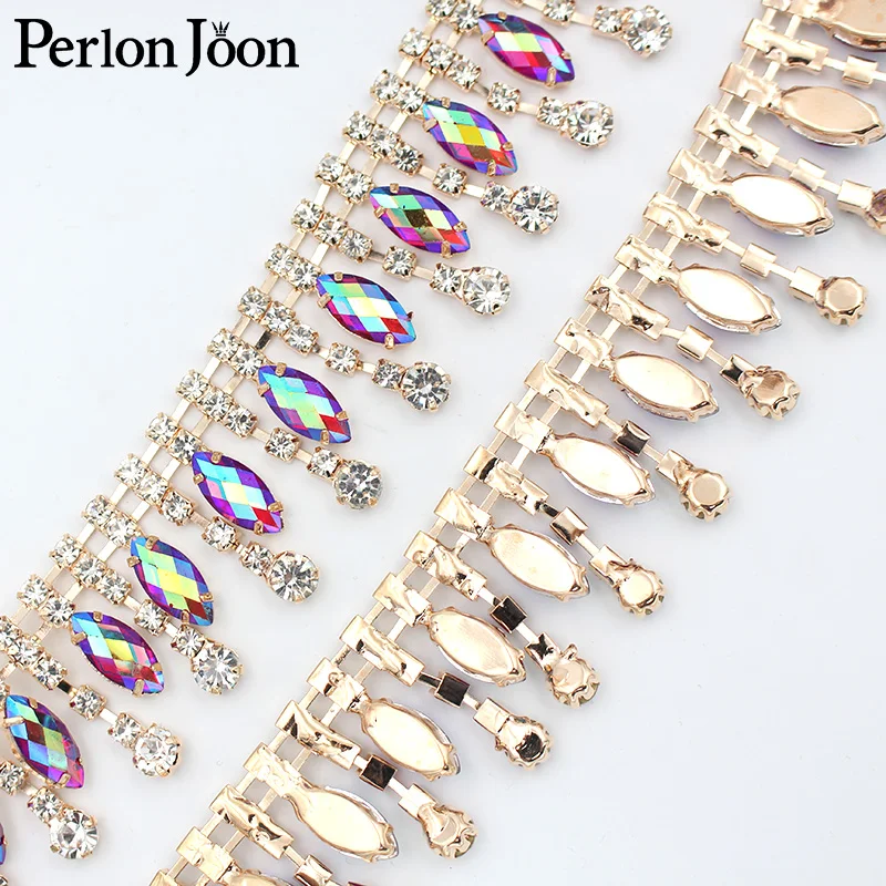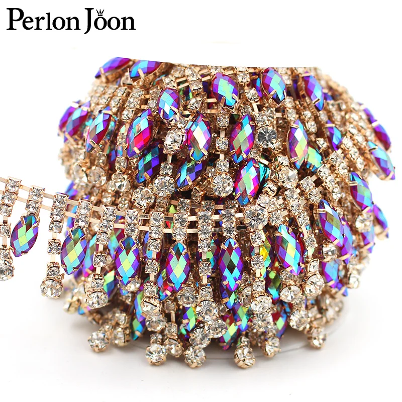 Декоративные разноцветные Стразы ab для женской одежды, 1 ярд, ML057, Золотая цепь с кристаллом
