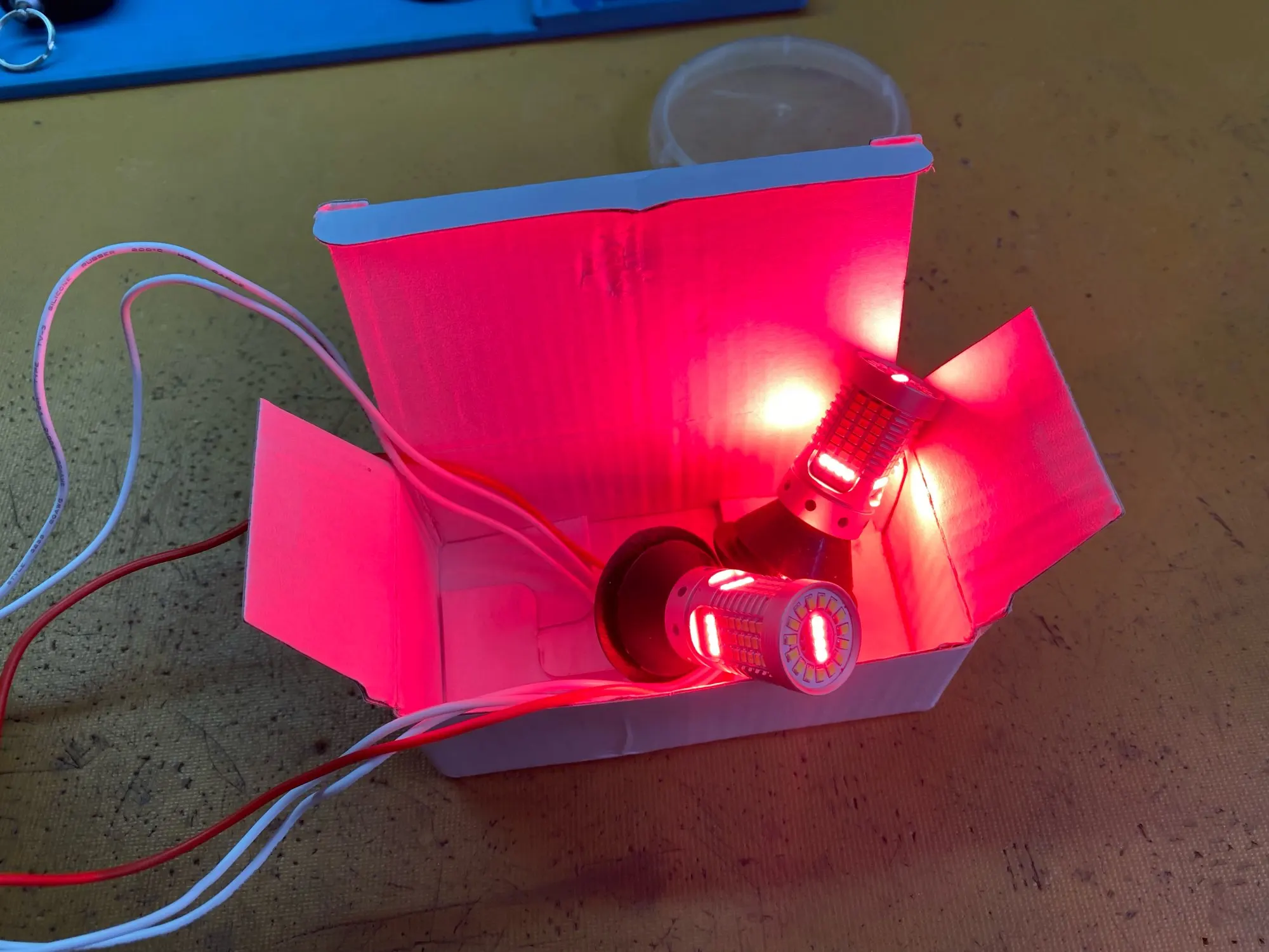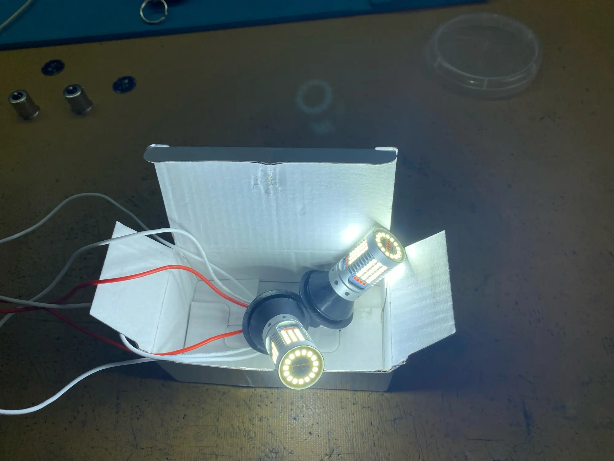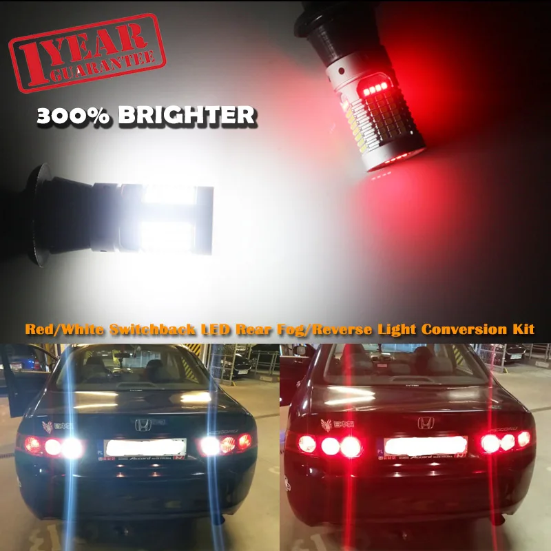 Луковицы премиумируют белый свет заднего хода на противотуманном свете, в случае питания двух положительных в то же время они будут освещены белым. Красный свет почти розовый, а яркость хорошая, белый свет намного ярче,