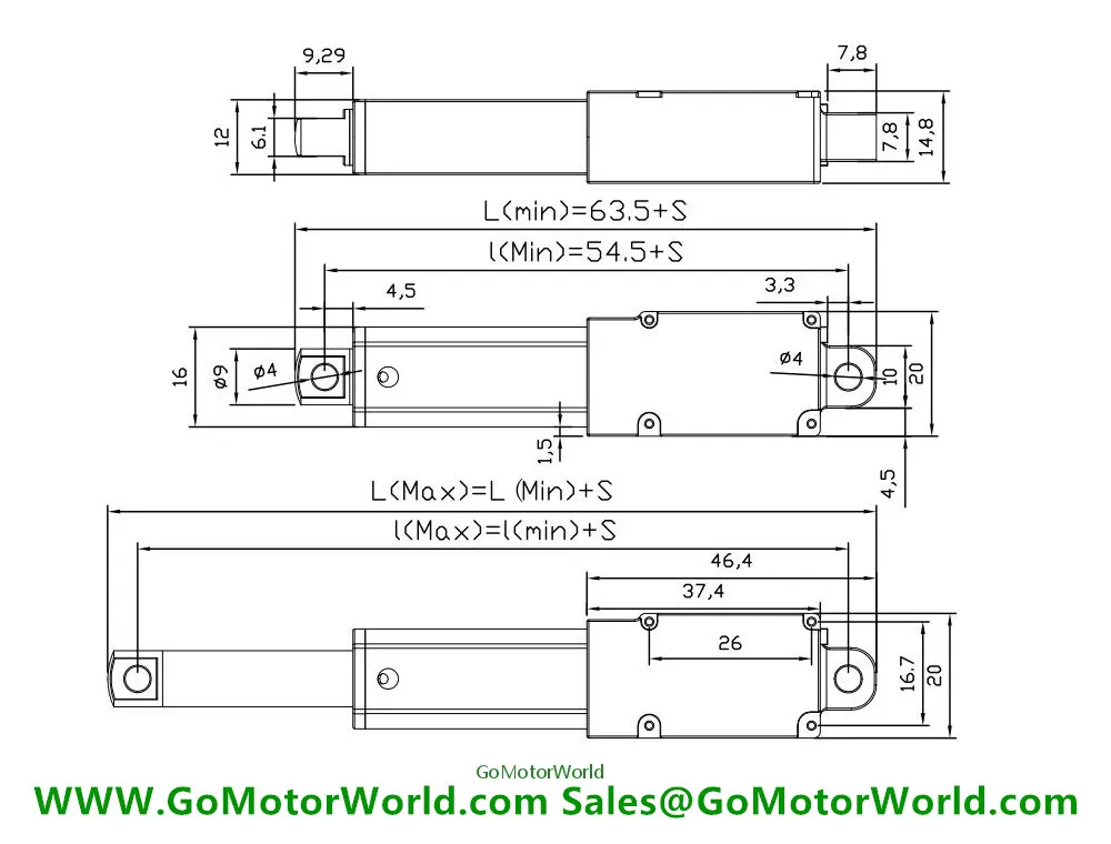 Lmin означает, что длина в разложенном виде линейный привод 100% полностью убирается, в то же время, он будет касаться хвост ограниченный переключатель и автоматически останавливается, очень безопасно.