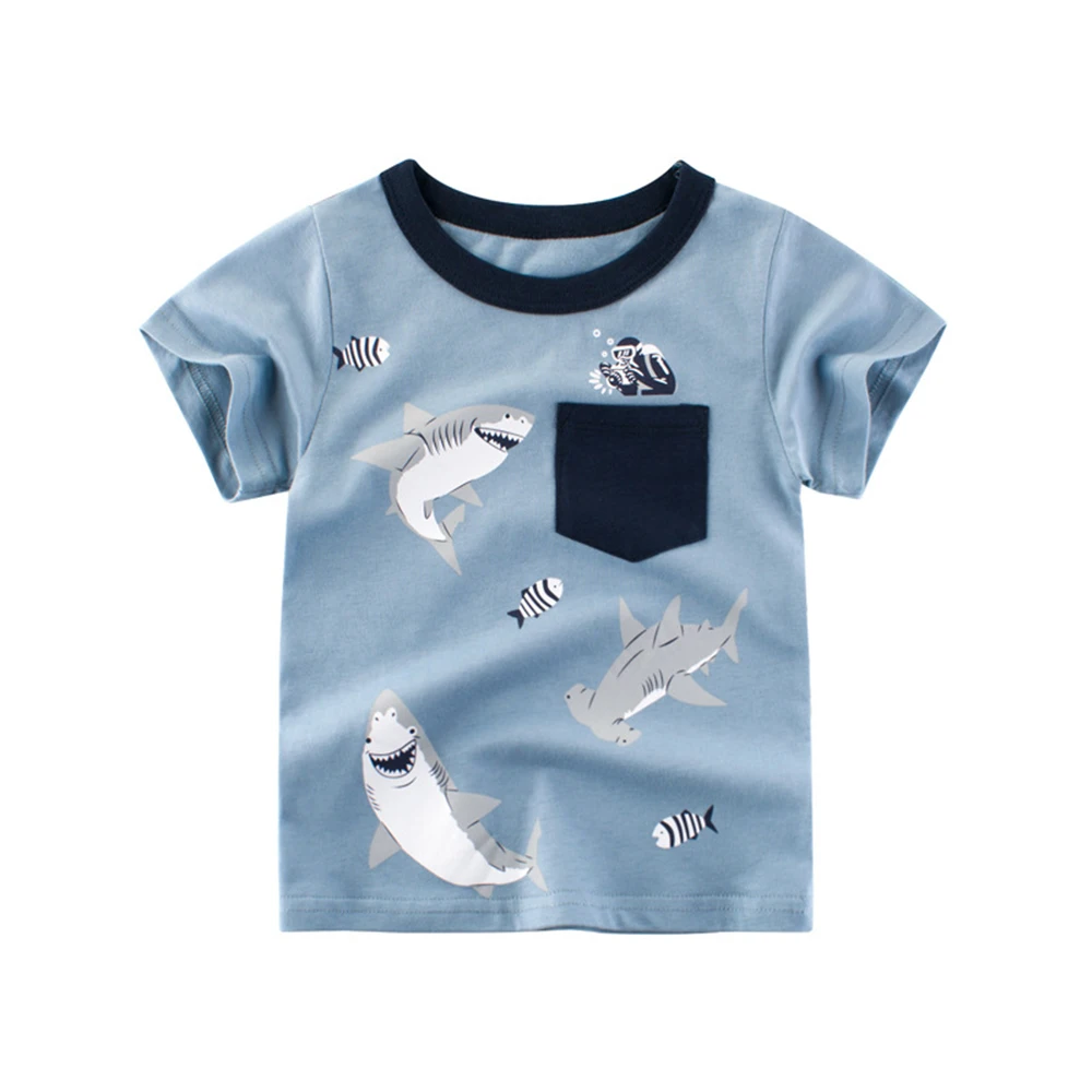 Комплект одежды для мальчиков BINIDUCKLING, летняя хлопковая футболка с коротким рукавом и принтом акулы + штаны, одежда для маленьких мальчиков