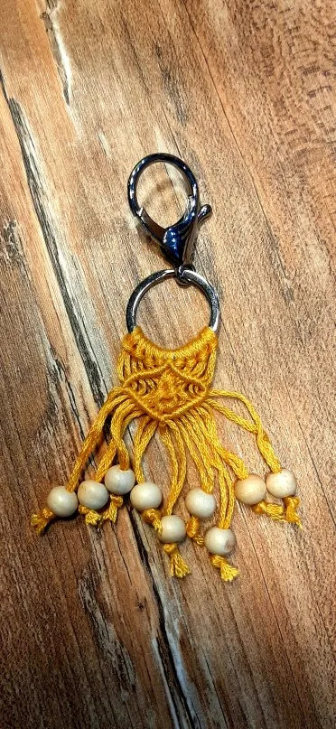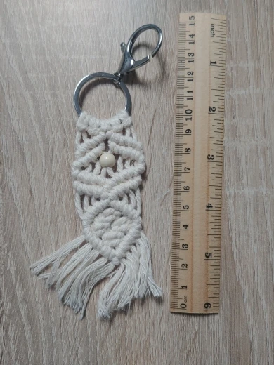 Очень хорошо и соответствует описанию, однако удачи в размещении ключей на кольце... Необходимо будет сделать макраме на пластиковом наконечнике, чтобы он мог поворачиваться без проблем