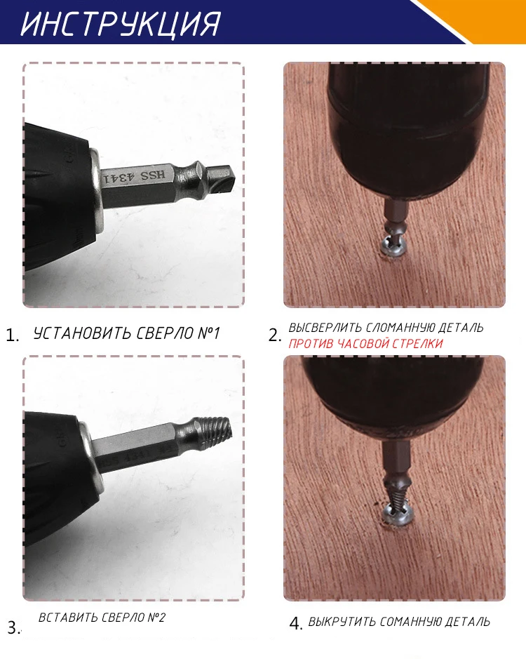 Набор экстракторов 4 шт 5 шт высокопрочная сталь HSS4241 для удаления сломанных болтов шурупов винтов хорошая помощь при деффект