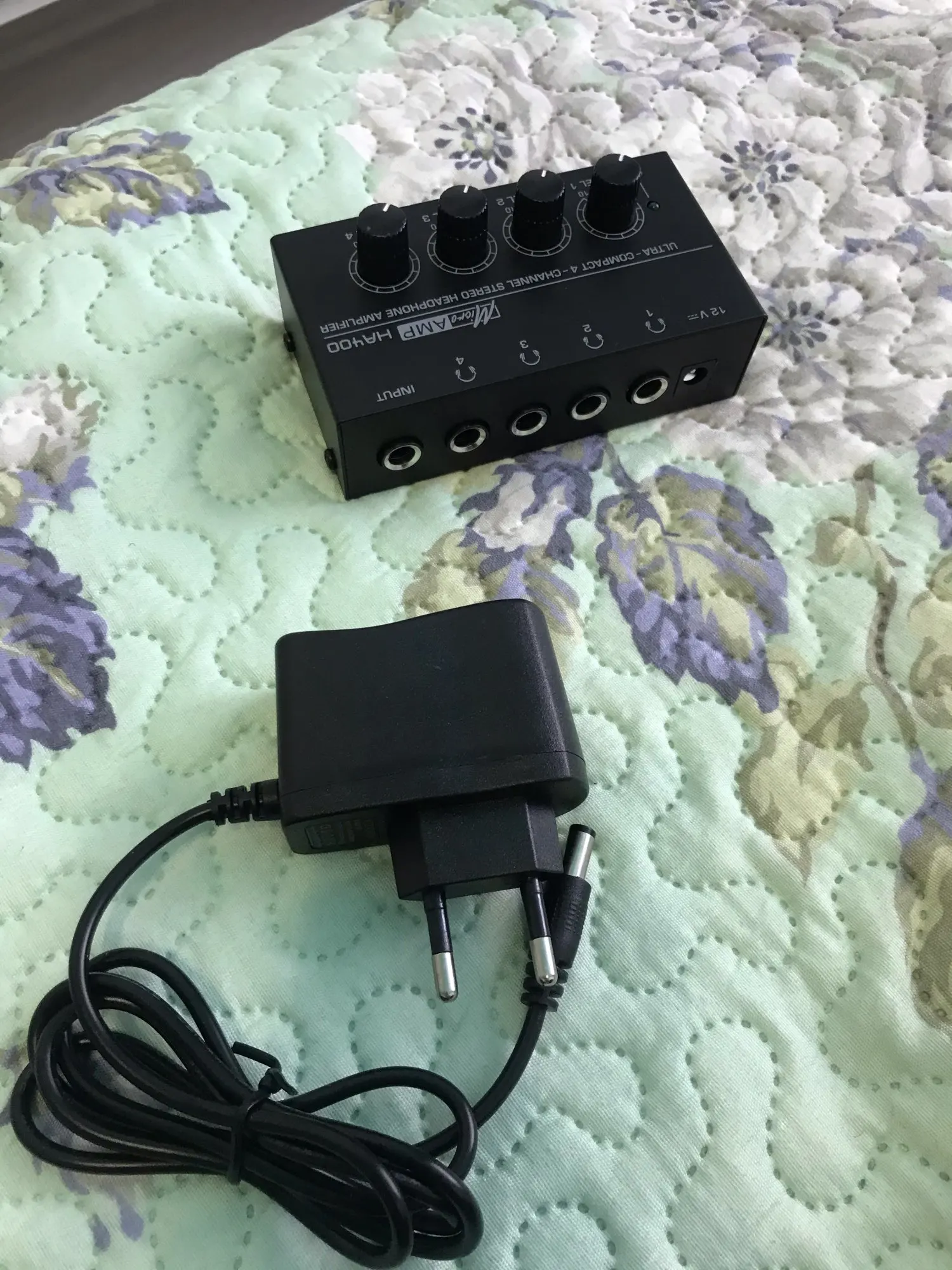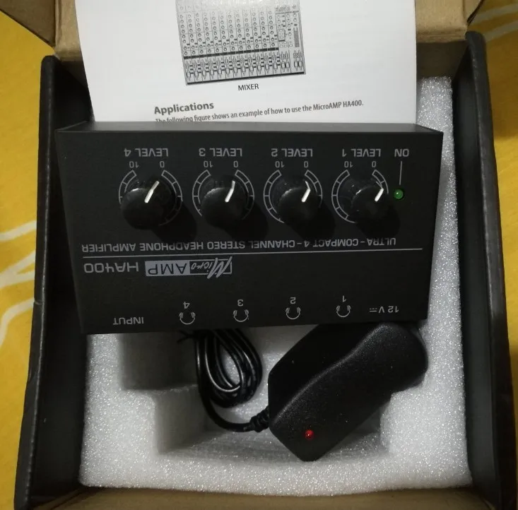 Штепсельная вилка ЕС, ультракомпактный 4-канальный мини аудио стерео усилитель для наушников с адаптером питания черный