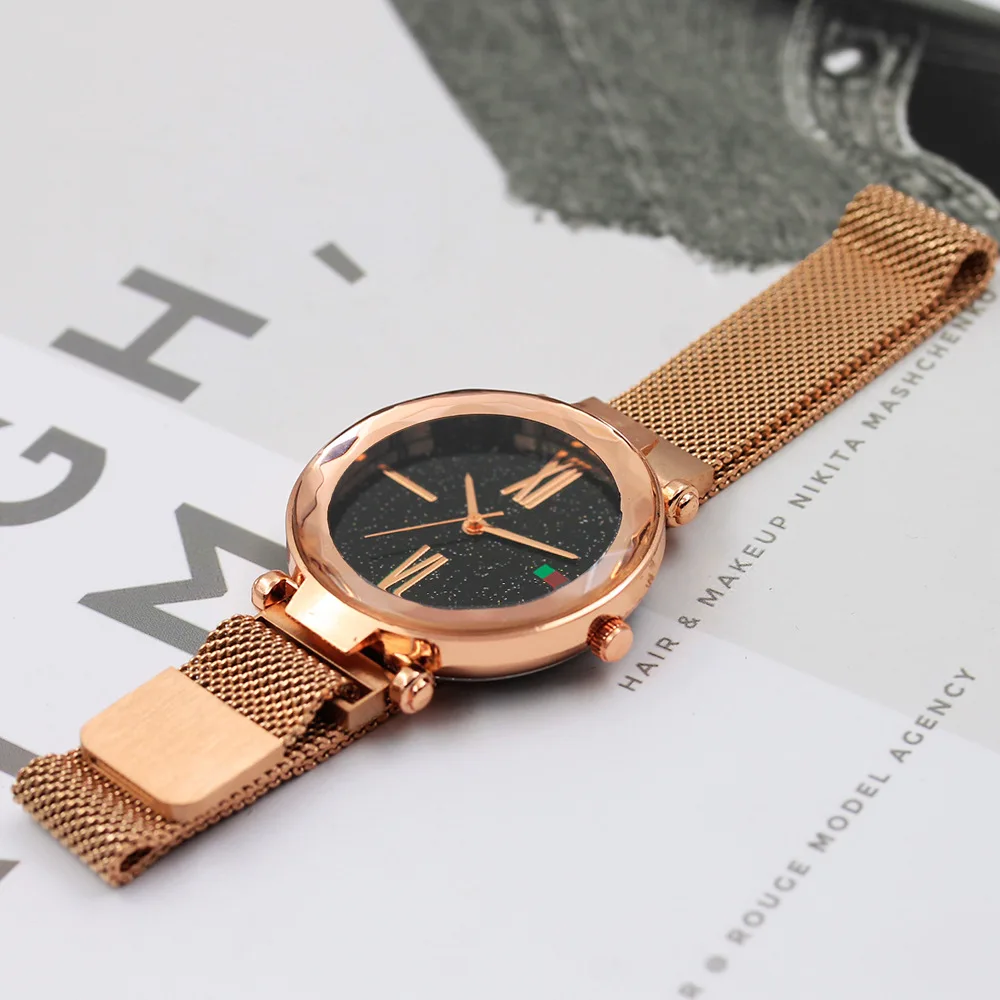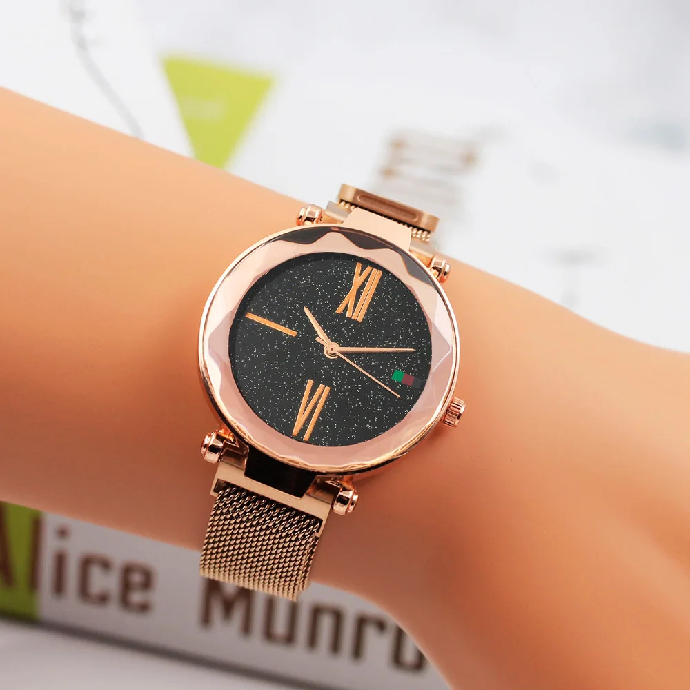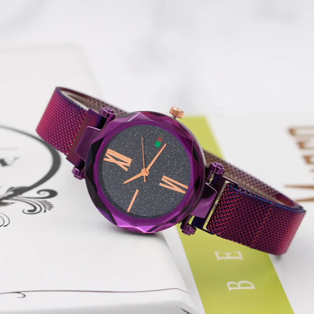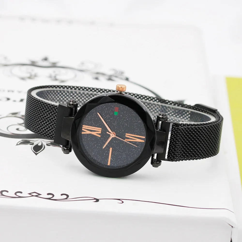 2019 модные часы со звездным небом, магнитные женские кварцевые часы, женские часы с сетчатым ремешком из нержавеющей стали, женские часы