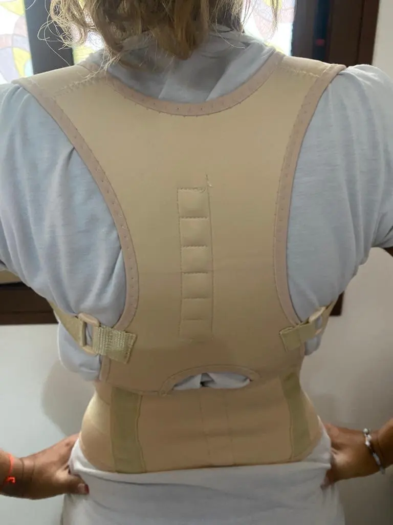 Отличный продукт, спина хорошая, но немного болит на подмышках, был день, когда я его ношу, и моя спина правильная, более того, он довольно близок к телу и с колготками, которые они не видели друг друга