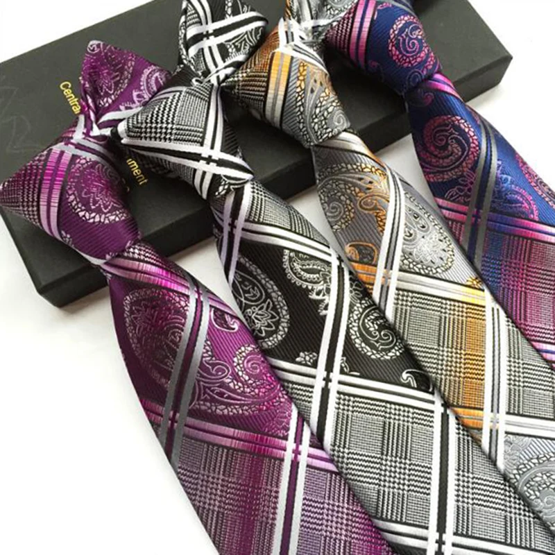 Классический Официальный галстук 8 см, черный жаккардовый галстук в синюю полоску в клетку, мужской деловой галстук, аксессуары для подарка, галстуки