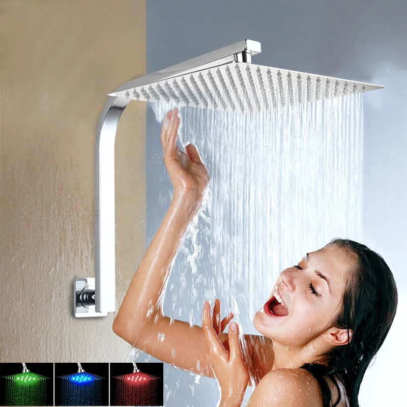 Квадратная душевая лейка KEMAIDI с хромированной отделкой, Набор смесителей для душа с гусиной шеей светодиодный светильник