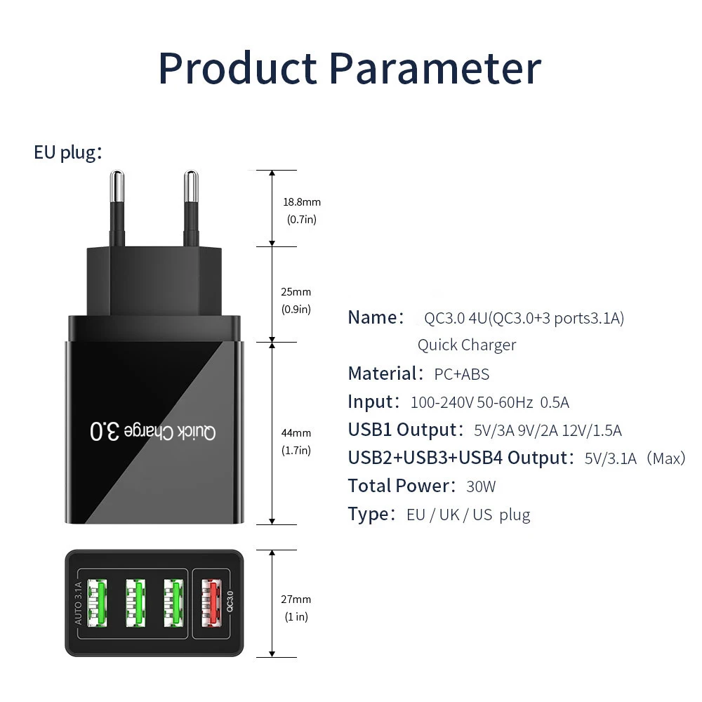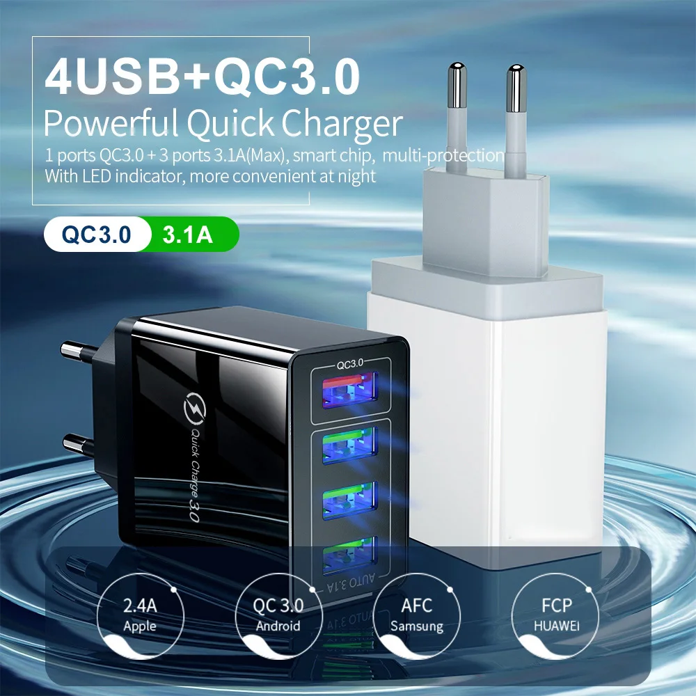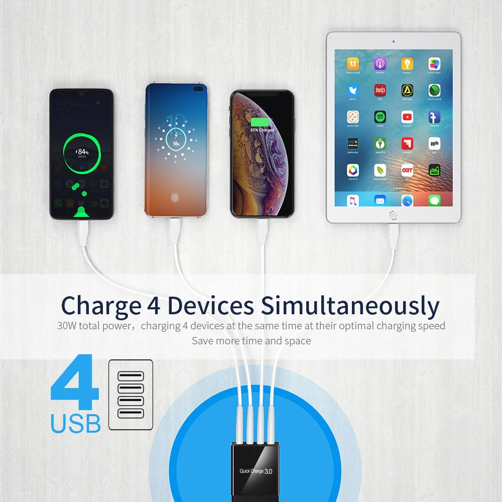 4 порта Быстрая зарядка 3,0 настенное USB умное зарядное устройство адаптер мобильный телефон 5V 3A зарядка Быстрая зарядка для iPhone iPad Samsung XiaoMi
