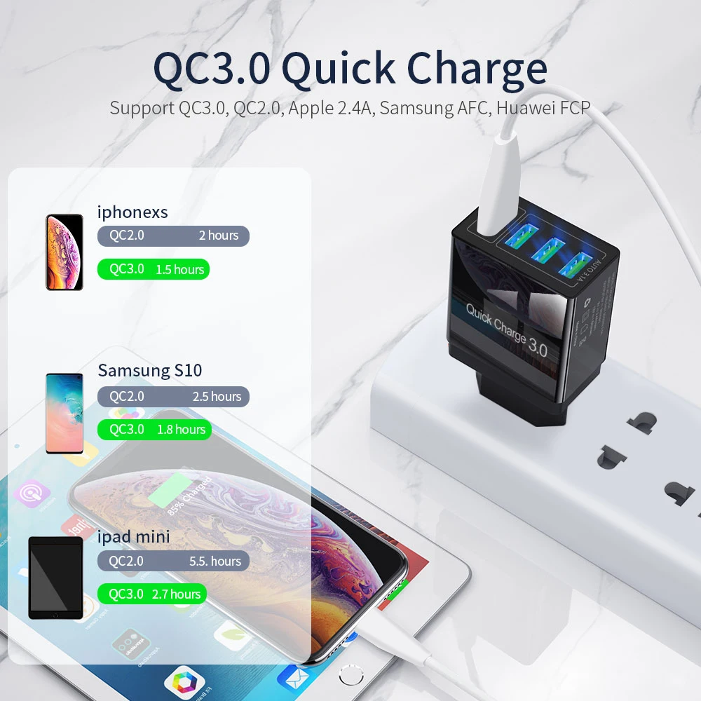 feature 5qc3.0 usb charger for iphone x xs 8 7 6 plus 5 5s se