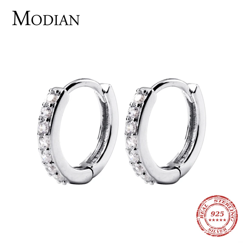 Modian новые модные 100% стерлингового серебра 925 сверкающие черные прозрачные CZ колечки для пирсинга Серьги для женщин классические серебряные ювелирные изделия