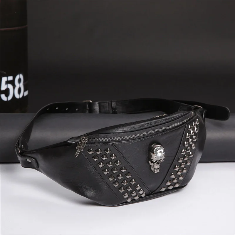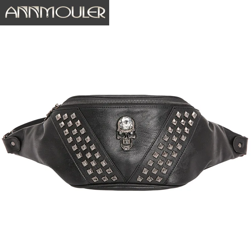 Поясная Сумка Annmouler унисекс из искусственной кожи, забавная дорожная сумочка на ремне для телефона в стиле панк, модный чемоданчик на бедро с черепом