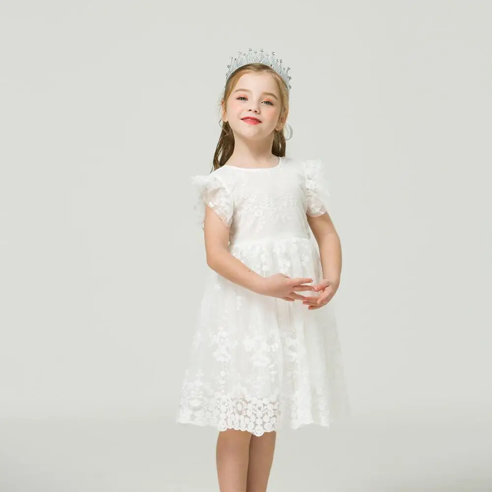 Кружевное платье-пачка принцессы с цветочным рисунком для маленьких девочек, детское ажурное платье на свадьбу, крестины, вечерние платья для детей