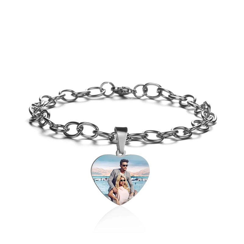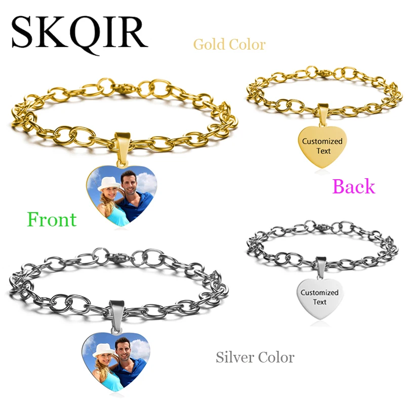 Индивидуальные фото браслет персонализированные таблички фото браслет выгравировать имя Дата нержавеющая сталь для женщин цепи и звенья браслеты