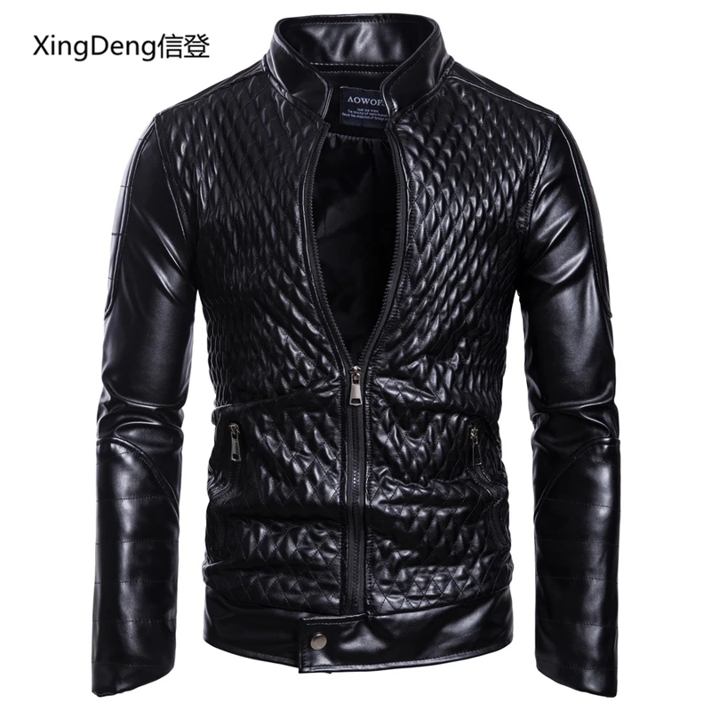 Мужская мотоциклетная кожаная куртка XingDeng, повседневные Модные мужские куртки на молнии, верхняя одежда с воротником-стойкой, одежда для отдыха, большие размеры 3XL