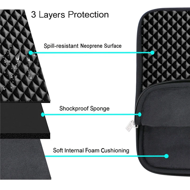 4. Водоотталкивающий материал из лайкры защищает ваш ноутбук от воды, пыли, грязи и царапин. Мягкая подкладка из пенопласта не царапает компьютер и обеспечивает амортизацию ударов.
