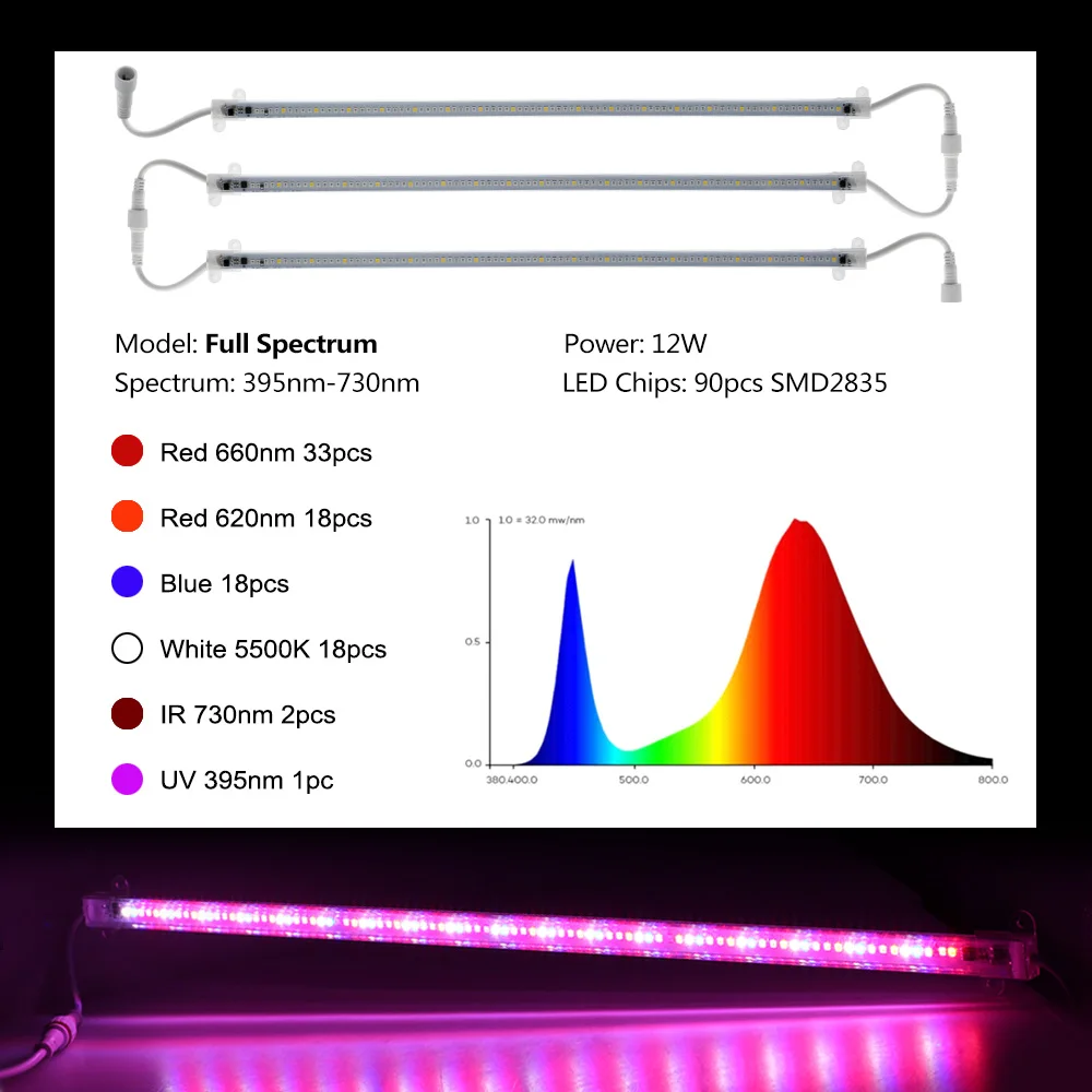 Название продукта: 90 светодиодов полный спектр LED Grow LightВходное напряжение: 110В/220ВТип вилки:Вилка стандарта США (110 В) / Штепсельная Вилка европейского стандарта (220 В)Мощность: 12 ВтШирина: 1,4 смДлина:110-40 см / 220В-50 см(Для получения подробной информации см. Картинку товара)Материал: ПВХ + алюминийСпектр: 395nm-730nmСВЕТОДИОДНЫЕ Чипы: 90 шт. SMD2835(Красный 660нм 33 шт., красный 620нм 18 шт., синий 18 шт., белый 5500 к 18 шт., ИК 730нм 2 шт., УФ 395нм 1 шт.)
