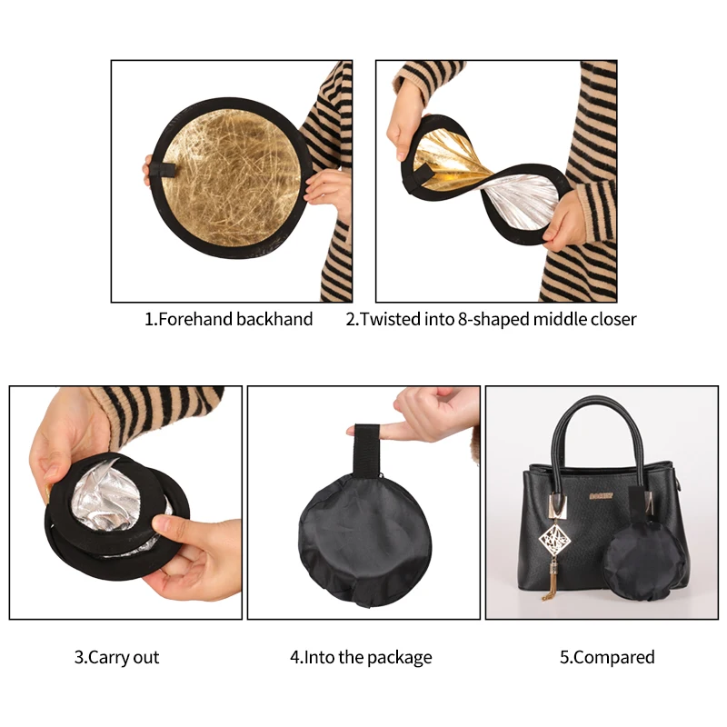 11,8 дюймов30 см 5-в-1 разборный мульти-светоотражатель отражатель с сумкой-прозрачный, серебро, золото, белый и черный